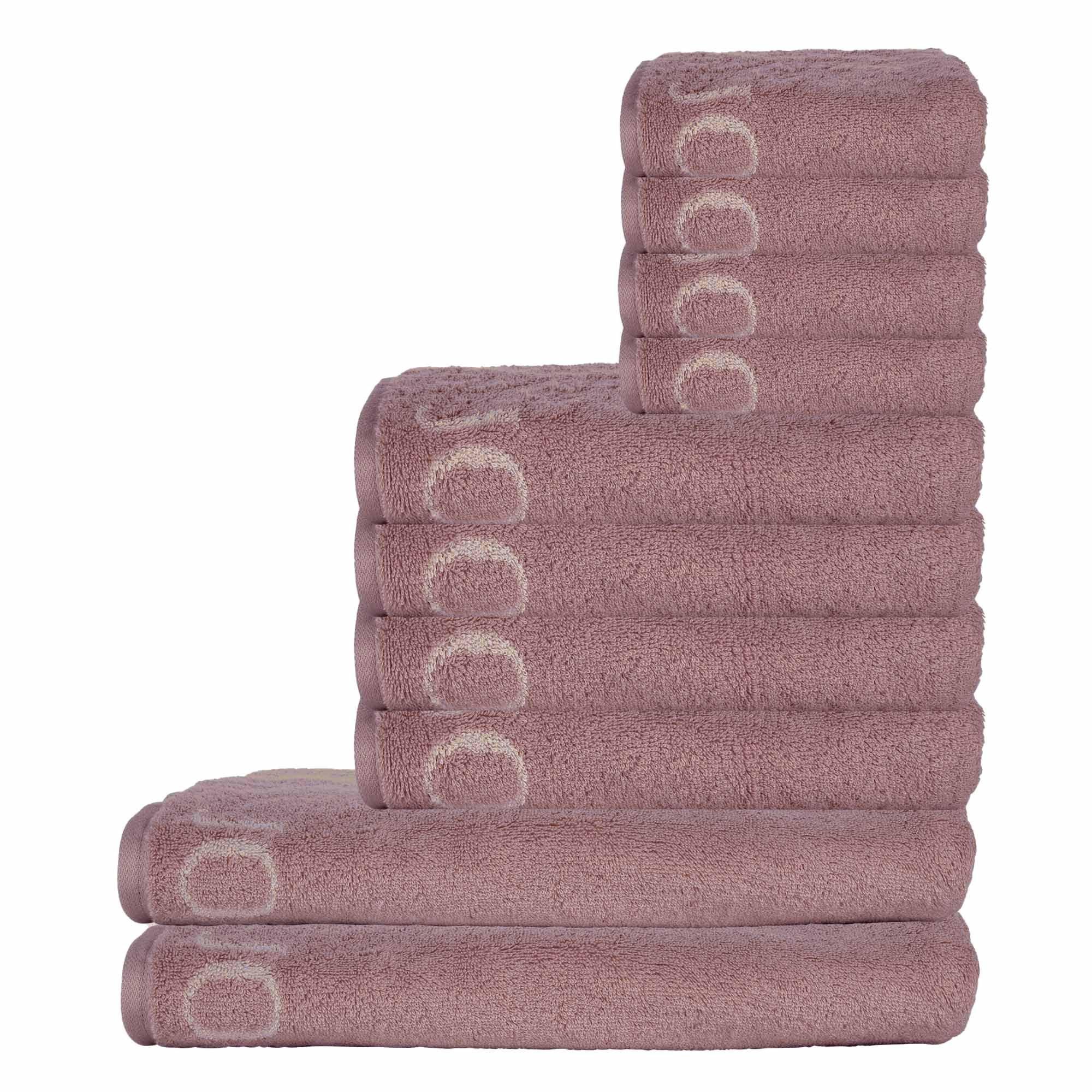 Elegante Handtuch-Serie von der Marke JOOP!. Set bestehend aus 2 Duschtüchern, 4 Handtüchern und 4 Gästetüchern. Flauschiger Walkfrottier aus reiner Baumwolle.