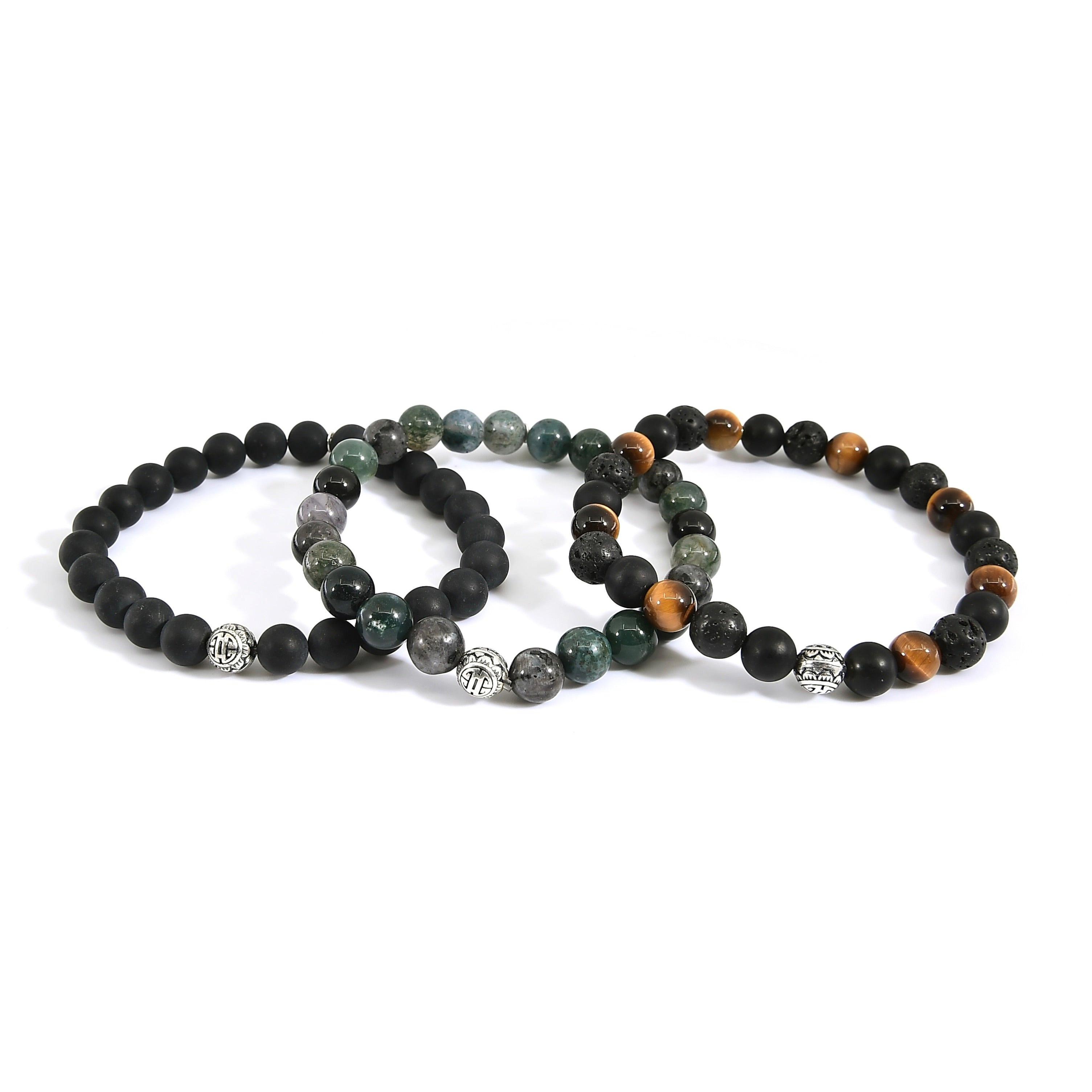 Kraftvolle Herrenarmbänder Kombination im Bundle mit echten Steinen & 925 Silber