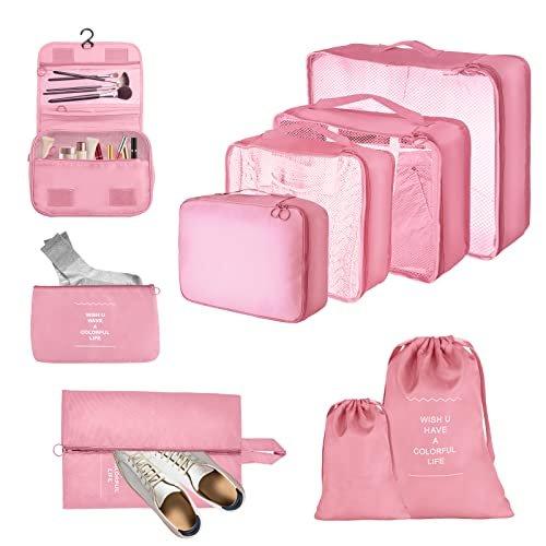 Enthält 3 Packwürfel für Kleidung (groß, mittel, klein), 1 BH-Unterwäschebeutel, 1 Kulturbeutel, 1 Schuhbeutel für Schuhe, 1 großer Kordelzugbeutel, 1 kleiner Kordelzugbeutel, 1 Reißverschlusstasche. Sie können Ihr Gepäck ordentlich und aufgeräumt, leicht zu packen alle Ihre Sachen gut in Ihrem Koffer, Handgepäck, Schubladen und Rucksack, so dass Sie eine einfache und komfortable Reise Erfahrung. Hergestellt aus wasserdichtem Beschichtungsstoff und wasserdichtem Polyesternetz, sorgfältige Nähte, superleicht und reißfest. Sehr langlebig, waschbar, leicht, wasserdicht, feuchtigkeits- und staubdicht. Zusammenklappbar, leicht zu verstauen. * Zwei-Wege-Reißverschluss für schnelles Ein- und Auspacken. Mesh-Oberteil sorgt für Belüftung und erleichtert die Identifizierung des Inhalts. Die festen Schnallen im Inneren des Verpackungswürfels halten Ihre Kleidung sauber und ordentlich. Das glatte Material sorgt dafür, dass Ihre Kleidung nicht zerknittert wird. Stabiler Seitengriff, bequem zu tragen.