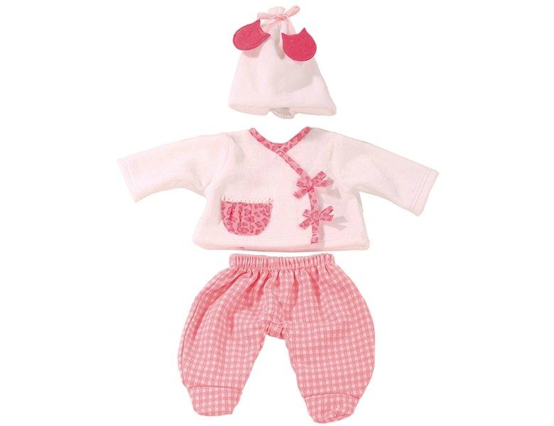 Nette Ausgehkleidung für Ihre Babypuppe. Set bestehend aus Hose, Jacke und Mütze. Der weiche und bequeme Stoff garantiert ein angenehmes Tragegefühl für Ihre Puppe. Die Kombination aus Leopardenmuster und Karodesign sorgt für einen fröhlichen Look.
