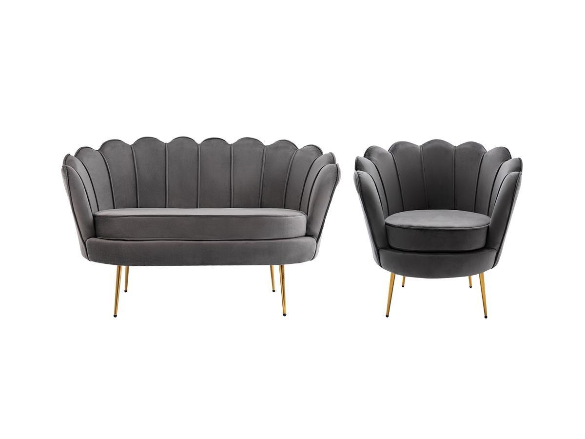 PASCAL MORABITO, Couchgarnitur Muschel 2+1 - Samt - Anthrazit - DANDELION