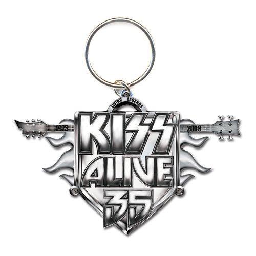 Marke: Kiss. Metall. Design: Druckguss, Flammen, Gitarre, Logo, Aufschrift. Spaltring. 100% offiziell lizenziert. Verpackung: Etikett.