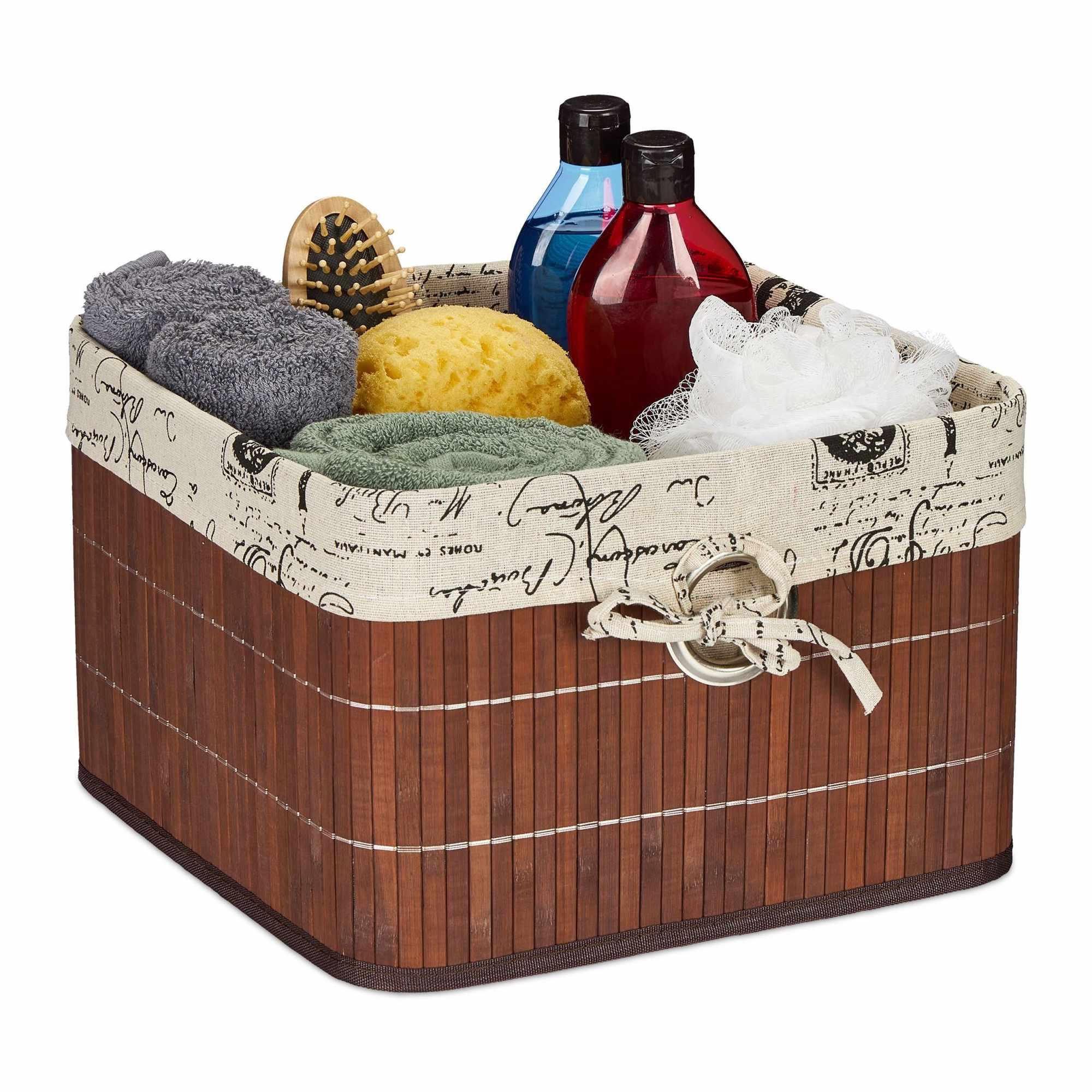 Verbessern Sie die Ordnung im Badezimmer mit diesem braunen Kosmetikkorb. Er bietet eleganten Stauraum für Kosmetika, Handtücher und mehr. Gefertigt aus robustem Bambus, harmoniert er mit seinem natürlichen Charme mit jeder Einrichtung.
