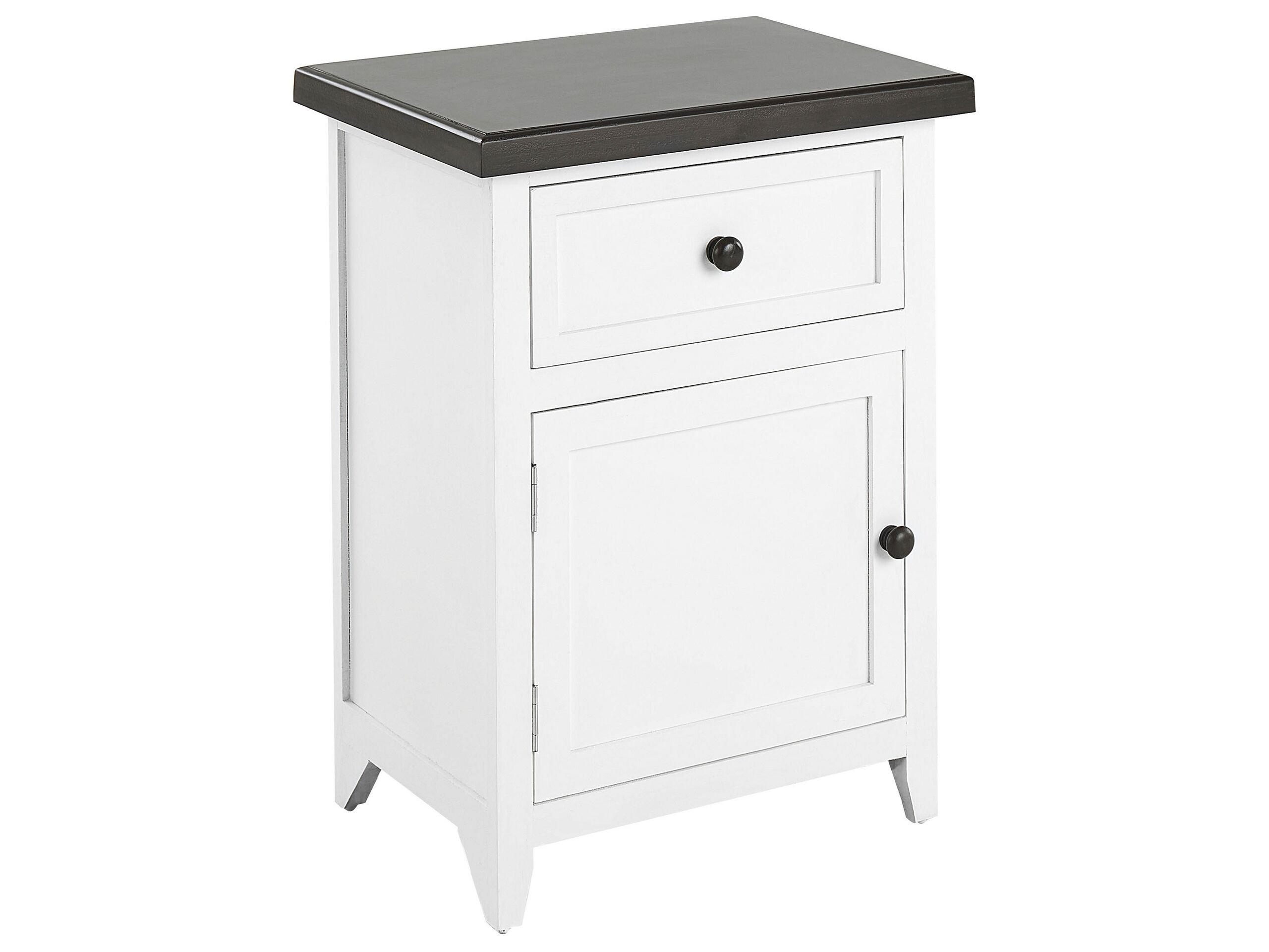 Klassischer Nachtschrank. Dieser Nachttisch ist eine stilvolle Ergänzung für jedes Schlafzimmer. Das Stück verfügt über eine geräumige Schublade für alle Kleinigkeiten oder Lieblingsbücher. Das Weiss bildet einen schönen Kontrast zu der braunen Platte und in Kombination mit den geraden, schlichten Linien passt das Möbelstück zu verschiedenen Einrichtungsstilen.