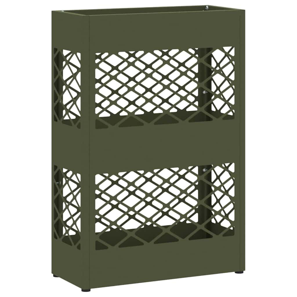 Dieser moderne Regenschirmständer mit Stauraum vereint Stil und Zweckmäßigkeit. Damit bleibt dein Eingangsbereich ordentlich. Seine schlanke rechteckige Form passt super zu modernem Raumdesign und betont die Einfachheit sowie Eleganz. Der robuste Stahlrahmen sorgt für Halt und Langlebigkeit, wodurch er der perfekte Mittelpunkt für jeden Innenraum wird. Materialien: Hergestellt aus robustem Stahl, ist der Regenschirmständer langlebig und behält ein modernes Aussehen. Die Stahlkonstruktion ist so designt, dass sie täglichen Gebrauch übersteht und gleichzeitig stylisch ist. Dank der wasserabweisenden Oberfläche bleiben deine Sachen immer trocken.Enthaltene Komponenten: Der Ständer hat eine ansprechende Rückseite, sodass du ihn überall ohne Wandhalterung aufstellen kannst. Ideal für verschiedene Platzierungen in deinem Raum. Stabil und sicher, bietet er zuverlässig Stauraum für Regenschirme und mehr.Merkmale / Funktion / Design: Ein Highlight ist der großzügige Stauraum, der genug Platz für mehrere Regenschirme und andere wichtige Dinge im Eingangsbereich bietet. Perfekt für hektische Haushalte, die schnellen Zugriff und Ordnung brauchen.Empfohlene Verwendung: Vor allem für drinnen gedacht, passt dieser Regenschirmständer wunderbar in Eingänge, Flure oder Büros. Sein minimalistisches Design ergänzt moderne Deko und sorgt für Ordnung im Raum.Pflege & Wartung: Halte den Ständer einfach sauber, indem du ihn mit einem feuchten Tuch abwischst und aggressive Chemikalien vermeidest. So bleibt er wie neu und hält länger. Farbe: OlivgrünMaterial: StahlGesamtabmessungen: 28 x 12 x 41 cm (L x B x H)Gewicht: 1,98 kgLanglebigDekoratives DesignRahmenmaterial: StahlNur für den InnenbereichLieferumfang:1 x RegenschirmständerMontage erforderlich: JaEAN: 8721158281357SKU: 868528Brand: vidaXL