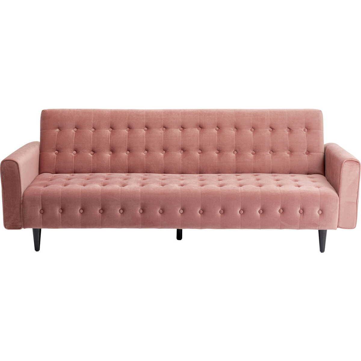 Kleine Wohnung? Kein Problem. Tagsüber darf auf der Zweisitzer-Couch in zartem Rosa entspannt werden, abends verwandelt sie sich in ein gemütliches Bett mit Taschenfederkernpolsterung. Die Lehne lässt sich im Handumdrehen nach hinten klappen, die Armlehnen sind abnehmbar. Die Schlafcouch ist nicht nur praktisch, sondern dank Retro-Charme, markanter Steppung und schwarz lackierten Füssen auch optisch ein wahres Ass!Schickes Schlafsofa mit moderner Formensprache und dezenter Retro-Note, komfortabel und leicht in der HandhabungBesonders praktisch sind die abnehmbaren Armlehnen. Sind sie umgeklappt, kann man sich auf einer Liegefläche von 109 x 191 Zentimeter ausstreckenPerfekter Komfort und samtig weicher Bezug in Rosa mit knopfgeheftetem Polster ein Sofa mit sanftem Glamour-FaktorIdeal für gastfreundliche Haushalte, die Freunden ein Bett zum Übernachten anbieten wollenDie zusätzlichen Beine lassen sich einklappen und sind diskret hinter Reissverschlüssen in der Rückenlehne verstecktProduktinformation Polsterung: 25 kg/m_ Polyurethan, Sitz: Eukalyptus Spanplatte lackiert, Bezug: Polyester (Samtoptik), Fuss/Füsse: Gummibaum Massivholzplatte lackiert, Polsterung: Taschenfeder, 300 kg max. Belastbarkeit, zerlegt, 45 cm Sitzhöhe, 85 - 219 cm Stellfläche, 109 x 191 cm Liegefläche