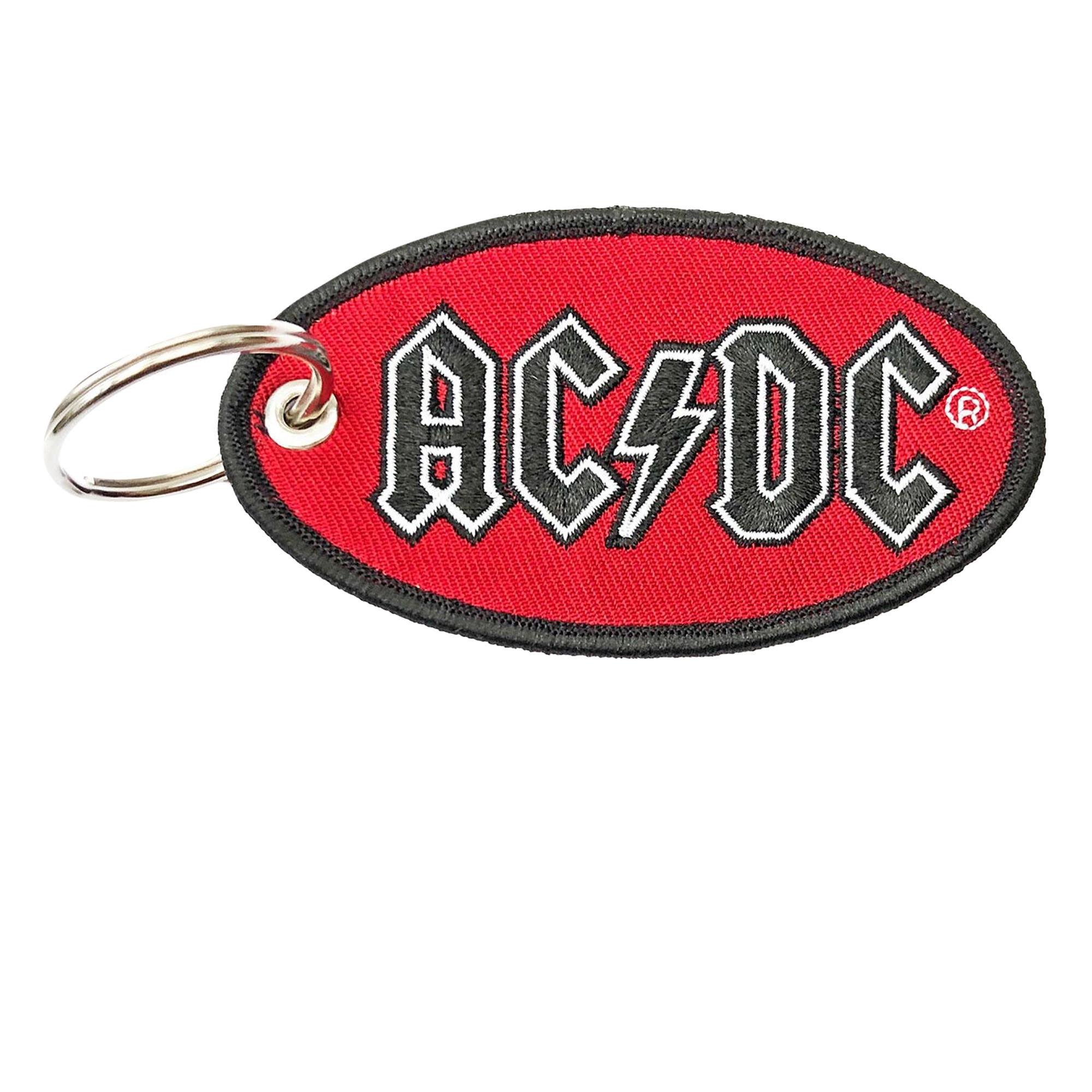 Marke: AC/DC. Metall, Polyester. Design: Gestickter Aufnäher, Logo, Oval. Zweiseitig, Schlaufe, Spaltring. 100% offiziell lizenziert.