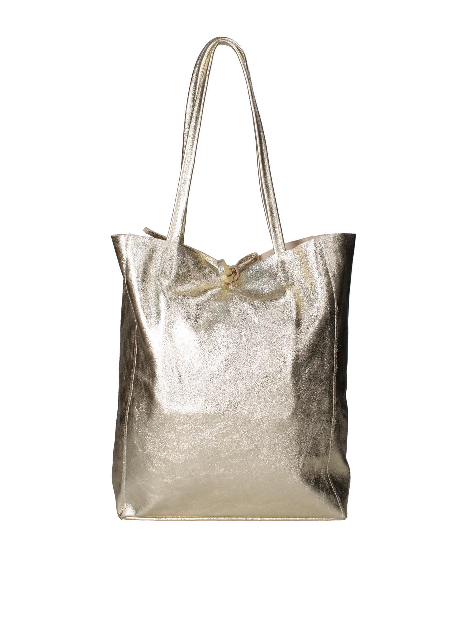Diese Shopper-Tasche bietet eine stilvolle und praktische Lösung für den Alltag. Ihr geräumiges Design macht sie ideal zum Transportieren von Essentials, sei es zum Einkaufen, für die Arbeit oder in der Freizeit. Das Metallic-Finish verleiht jedem Outfit einen Hauch von moderner Eleganz.