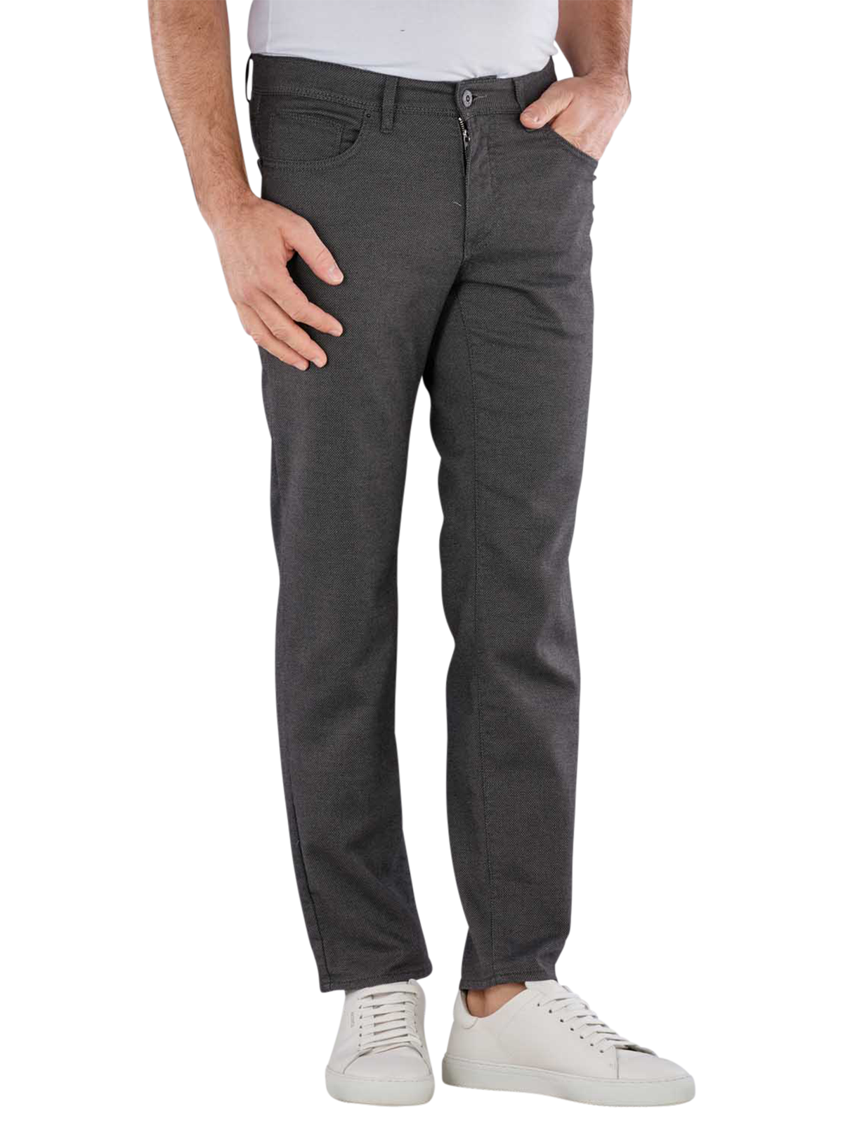 Die Cadiz Hose für Männer bietet mit ihrem geraden Beinausschnitt und der mittleren Bundhöhe einen klassischen Look. In elegantem Grau gehalten, passt sie zu vielen Outfits. Der dünne Stoff mit Stretchanteil sorgt für angenehmen Tragekomfort. Diese Five-Pocket-Hose ist mit einem Reissverschluss ausgestattet.