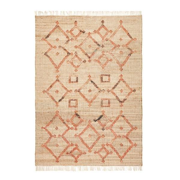 Von Natur aus authentisch und nachhaltig: Die Naturfaser Jute ist sehr strapazierfähig und langlebig. Zugleich besticht dieser Teppich auch durch den grafischen Ethno-Touch mit terrakottafarbenen Motiven im Berberstil.Das handwerklich gefertigte Gewebe aus Jute und Baumwolle weist einen raffiniert-authentischen Struktureffekt und subtile Farbnuancen aus Terrakotta und Naturtönen in Used-Optik auf.