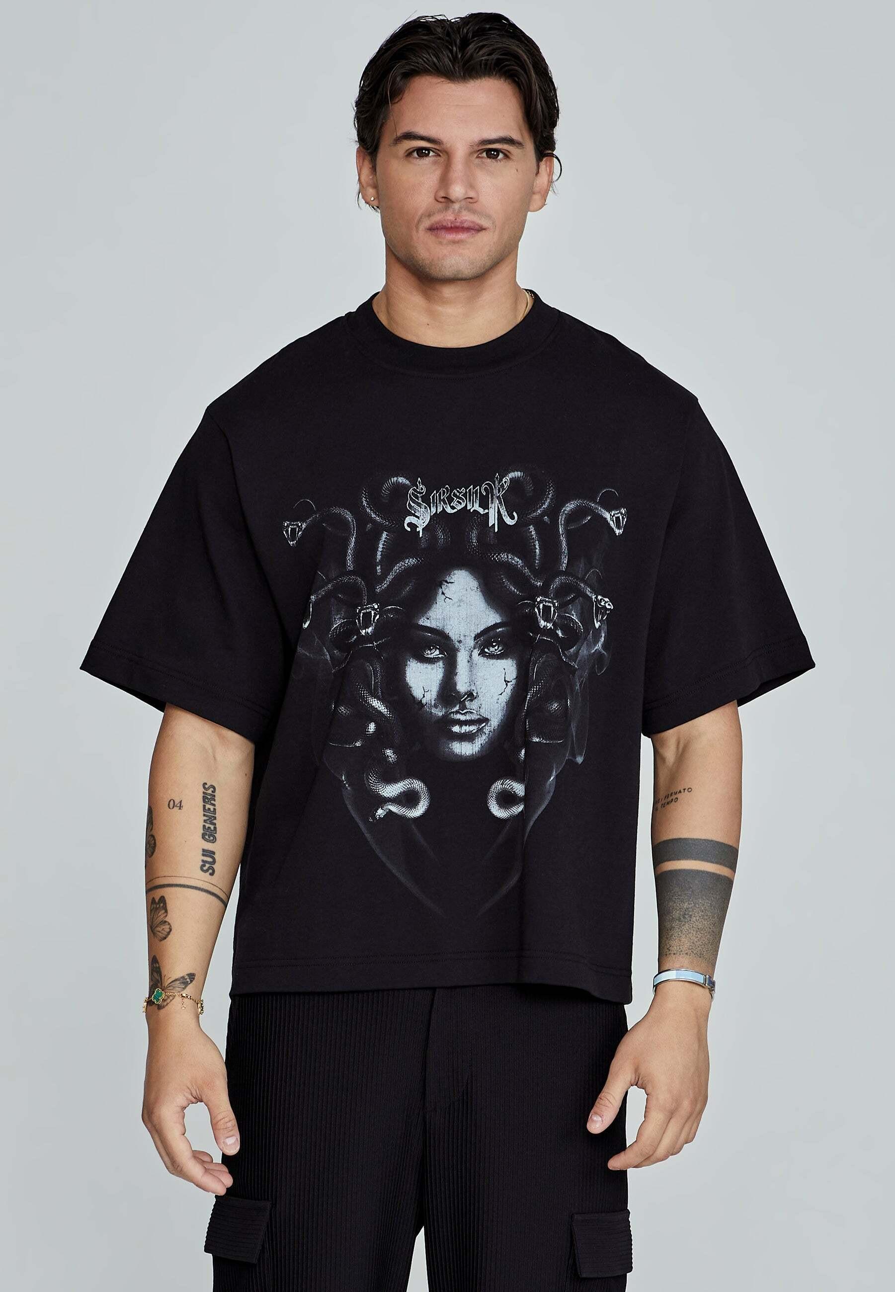 Sik Silk, Medusa Grafikdruck Oversized T-Shirt