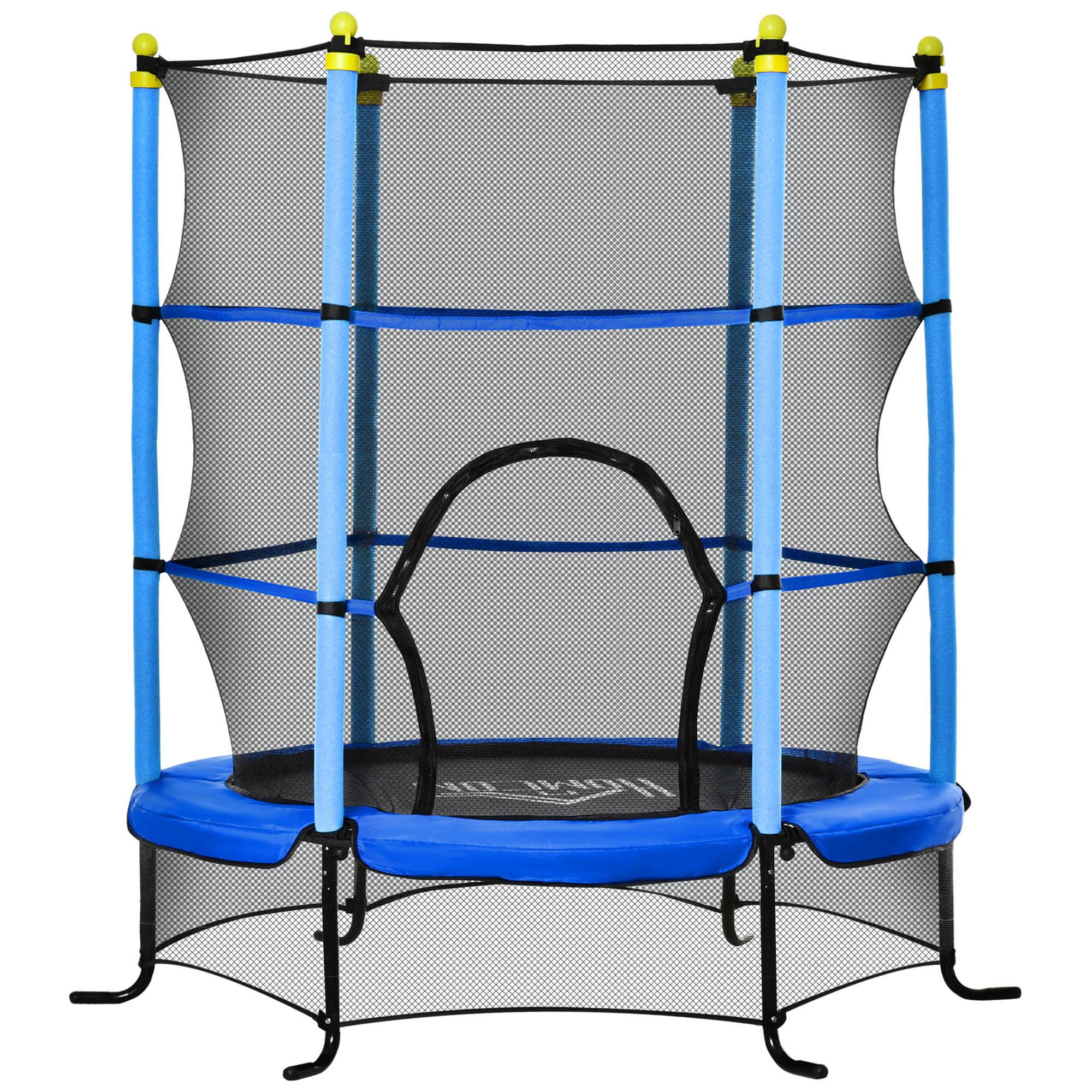 Großer Sprungspaß - besonders sicher: Dieses Trampolin für Kinder von HOMCOM ist rostfrei, erfüllt die höchsten Sicherheitsanforderungen und steht für uneingeschränktes Sprungvergnügen! Das hochwertige Sicherheitsnetz, die gepolsterten Pfosten und die verlängerte Randabdeckung sorgen für ein weiches Fallen und minimieren das Verletzungsrisiko. Lassen Sie Ihre Kinder spielerisch den Gleichgewichtssinn, die Koordination und Muskelkraft trainieren - egal ob zu Hause oder im Freien!