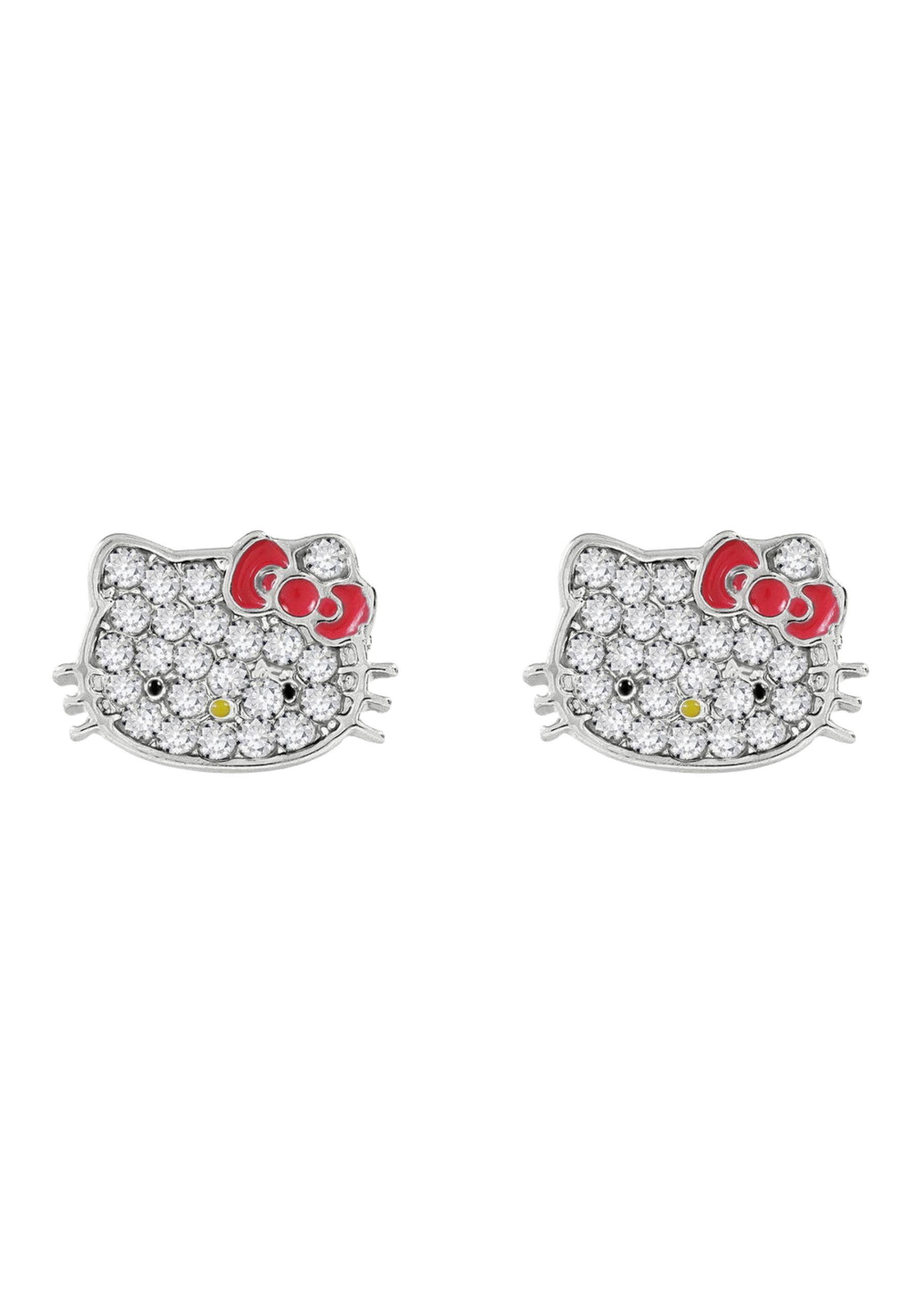Verleihe deinem Look einen Hauch von Glanz mit diesen bezaubernden versilberten Hello Kitty Ohrringen. Mit viel Liebe zum Detail gefertigt, zeigen die Ohrringe Hello Kittys charakteristische Schleife und sind mit funkelnden Steinen verziert, die das Licht wunderschön reflektieren. Ein perfektes Accessoire, um jedes Outfit aufzuwerten, und ein ideales Geschenk für Hello Kitty Fans jeden Alters.