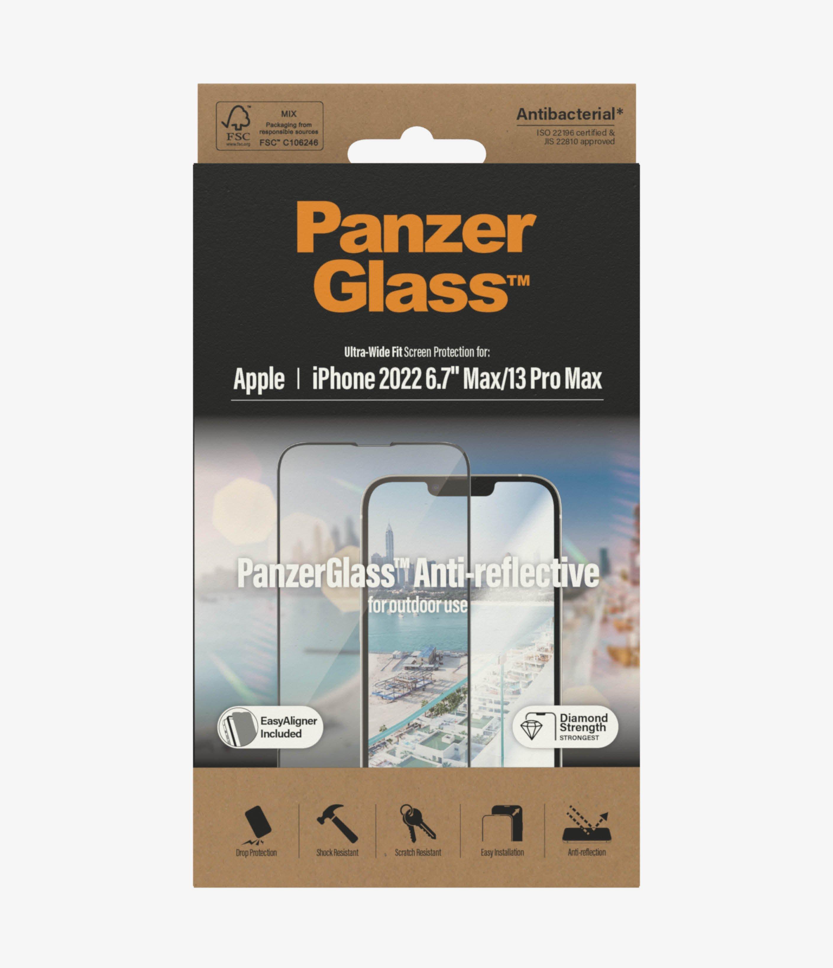 PanzerGlass Ultra Wide Fit, Anti Reflective. Markenkompatibilität: Apple, Kompatibilität: iPhone 14 Plus / 13 Pro Max, Schutzfunktion: Antibakteriell, Nachdenklich, Kratzresistent, Schockresistent. Produktfarbe: Transparent. Menge pro Packung: 1 Stück(e)
