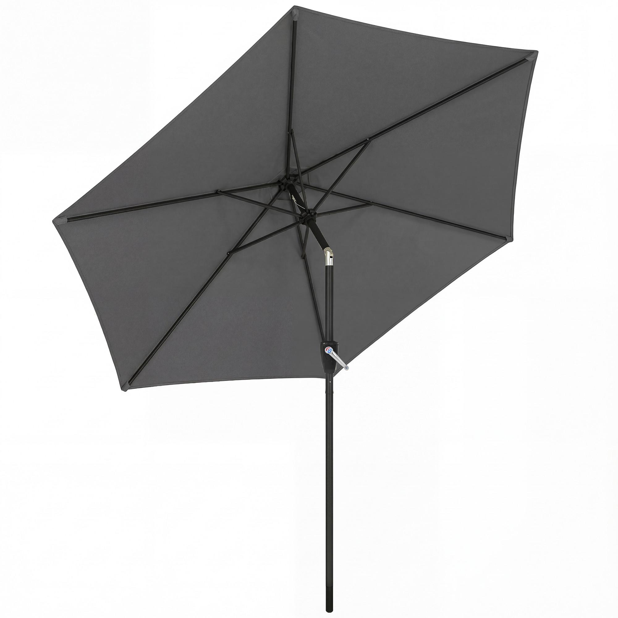 Bleiben Sie cool und genießen Sie die Natur mit dem Outsunny Sonnenschirm. Sein großes, leicht neigbares Dach folgt der Sonne und bietet großzügigen Schatten für Ihre Terrasse, Ihren Balkon oder Garten. Hergestellt aus 180g Polyester, blockiert der Outdoor Marktschirm UV-Strahlen und weist leichten Regen ab. Der stabile, pulverbeschichtete Mast und sechs verstärkte Streben sorgen für dauerhafte Stabilität, während die leichtgängige Handkurbel das Öffnen und Schließen mühelos macht.