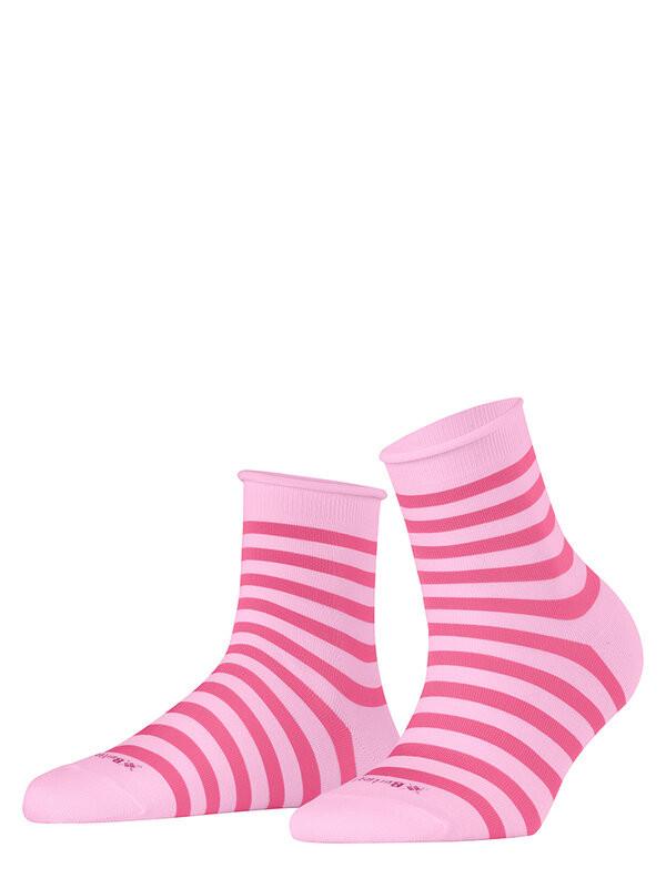 Die Swansea Socken präsentieren ein klassisches Streifenmuster, das elegant interpretiert ist. Sie sind mit einem femininen Rollbündchen und dem Burlington-Schriftzug in der Sohle gestaltet.