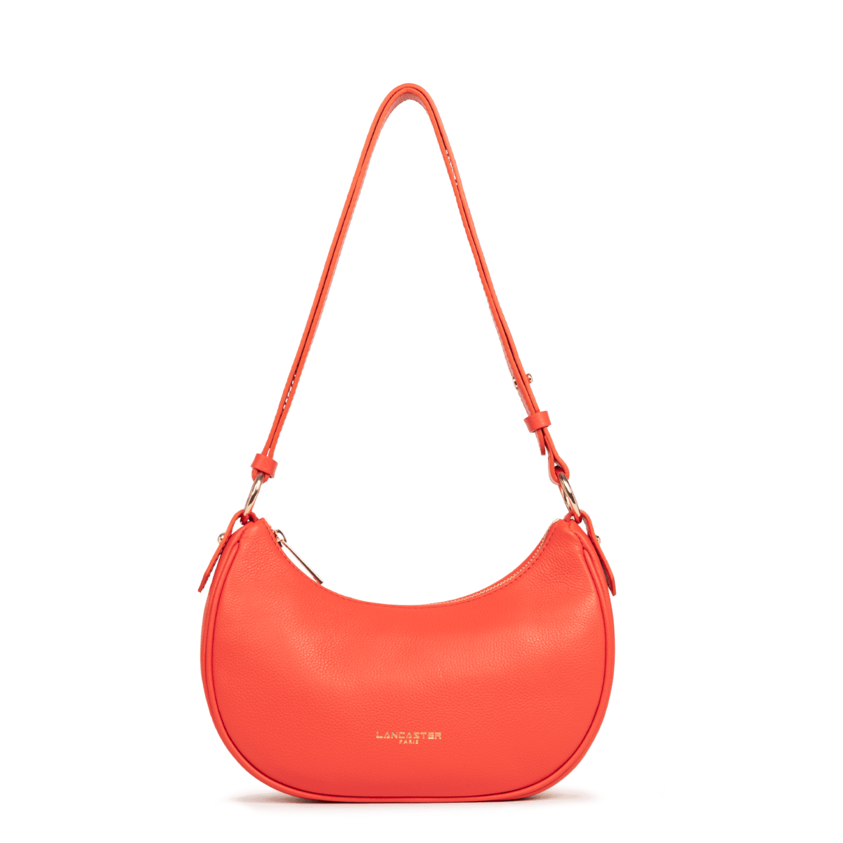 Die MILANO ARIA Schultertasche ist aus genarbtem Leder in leuchtendem Orange gefertigt. Diese schicke und moderne Tasche verfügt über ein Polyesterfutter und misst 25 x 14 x 6,5 cm. Sie ist als Messenger-Tasche konzipiert und hat einen verstellbaren Griff zur Längenanpassung. Der Griff ist mit silbernen Reissverschlüssen und einem "LANCASTER PARIS"-Logo in goldenen Buchstaben auf dem unteren Teil der Vorderseite versehen. Das Design umfasst einen geschwungenen Rand und eine einzige grosse Tasche, die mit Reissverschlüssen zugänglich ist. Diese Tasche ist aufgrund ihrer Ergonomie, Praktikabilität und Sicherheit ideal für Ausflüge, das Büro oder Reisen.
