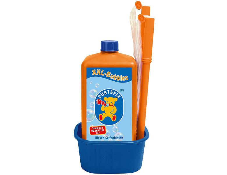 PUSTEFIX 420869858 XXL-Bubbles I 1000 ml Seifenblasenwasser und Zubehör I Bunte Bubbles Made in Germany I Für Hochzeit, Kindergeburtstag, Standesamt, Polterabend I Riesen-Seifenblasen.