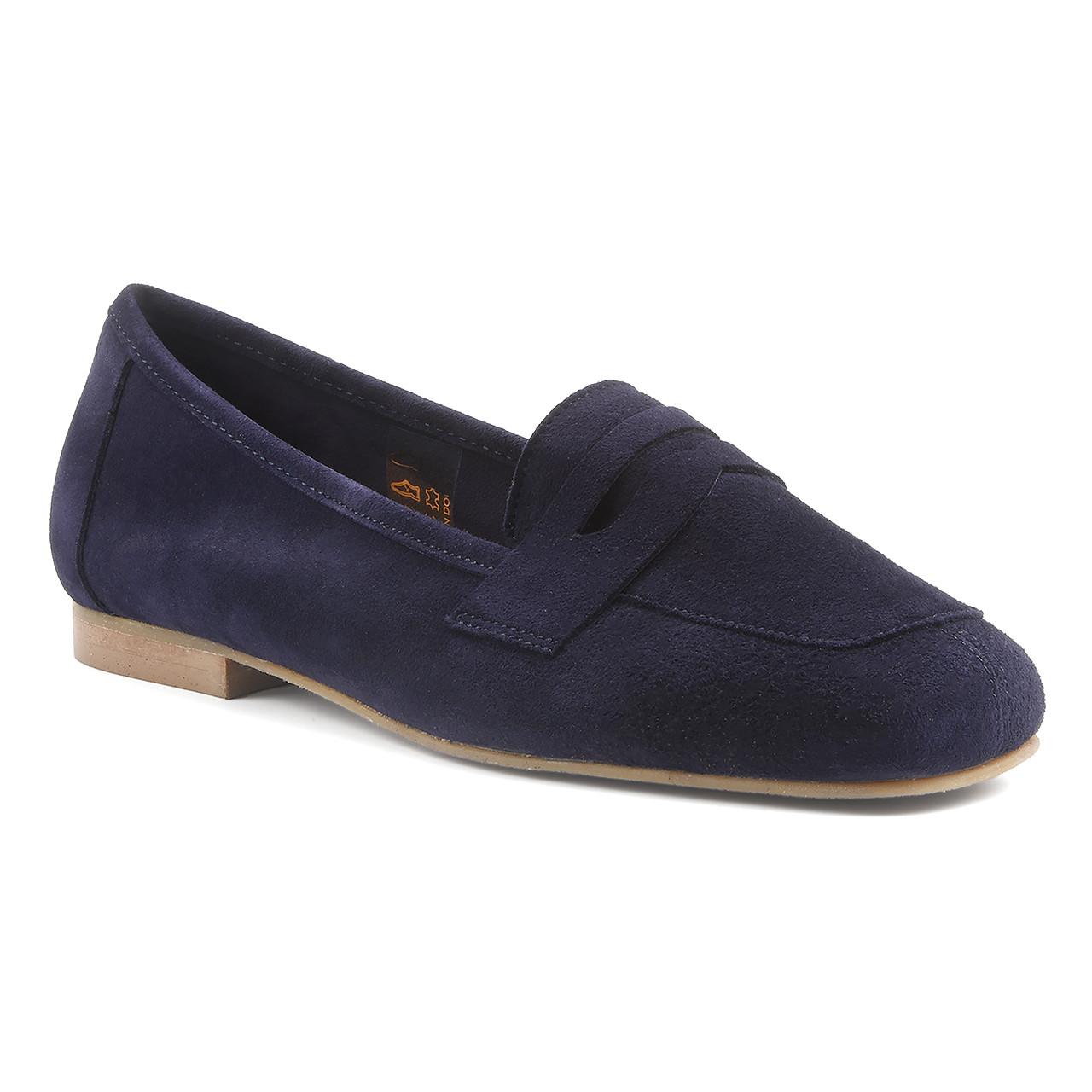 Die Amelia Loafers sind eine perfekte Wahl für formelle Anlässe. Diese klassischen Loafers sind entworfen, um eine elegante Raffinesse in jede Garderobe zu bringen. Ihr samtiges marineblaues Wildleder-Obermaterial bietet einen Hauch von Raffinesse, während die Leder-Innensohle optimalen Komfort gewährleistet. Die synthetische Sohle ist leicht und flexibel, wodurch die Amelia Loafers ideal für lange Bürotage oder Abende in der Stadt sind. Ihr 10 mm Absatz verleiht einen Hauch von Eleganz, ohne die Beweglichkeit zu beeinträchtigen. Designdetails wie der Samtleder-Loafer und die sichtbaren Nähte auf dem Obermaterial verleihen einen kühnen Stil. Die Amelia Loafers eignen sich perfekt für formelle Anlässe oder Abende und sind eine gute Wahl für Frauen, die Mode zu einem fairen Preis schätzen.