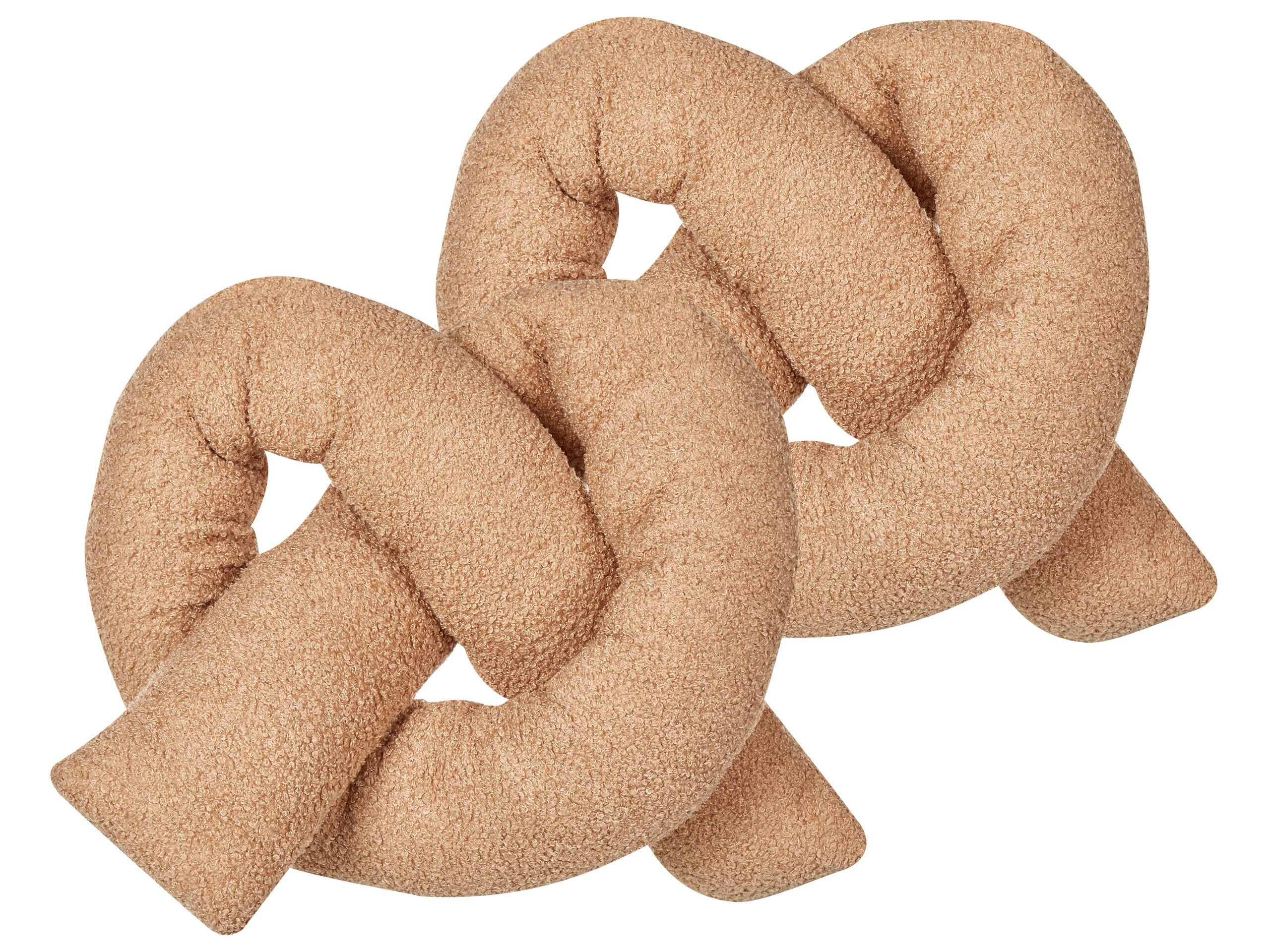 Zwei moderne, hellbraune Knotenkissen aus weichem Teddystoff. Setzen Sie auf diese modernen, länglichen Teddy-Kissen, bei denen Komfort, Stil und Langlebigkeit Hand in Hand gehen. Die hochwertigen Kissenbezüge sind aus unwiderstehlich weichem Teddystoff gefertigt und grosszügig mit PP-Baumwolle gefüllt, die für unvergleichliche Weichheit sorgt und zum Entspannen einlädt. Das Besondere an dem Set: Sie können die Kissen je nach Ihren Vorlieben verknoten und ihnen dabei eine aufregende Form verpassen. Egal, ob Sie diese Zierkissen auf einem Sofa, Sessel oder Bett platzieren diese It-Pieces sorgen garantiert für Aufsehen.
