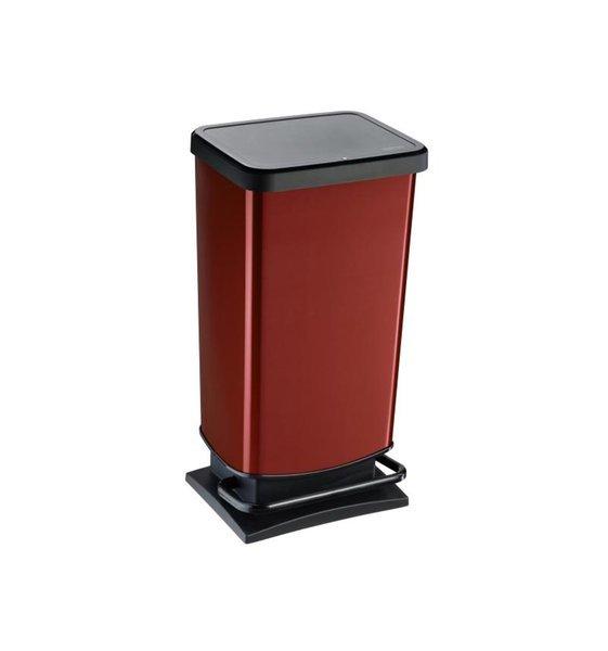 Rotho Treteimer Paso 40 l, Rot metallic, Fassungsvermögen: 40 l, Anzahl Behälter: 1, Material: Kunststoff, Form: Eckig, Detailfarbe: Rot