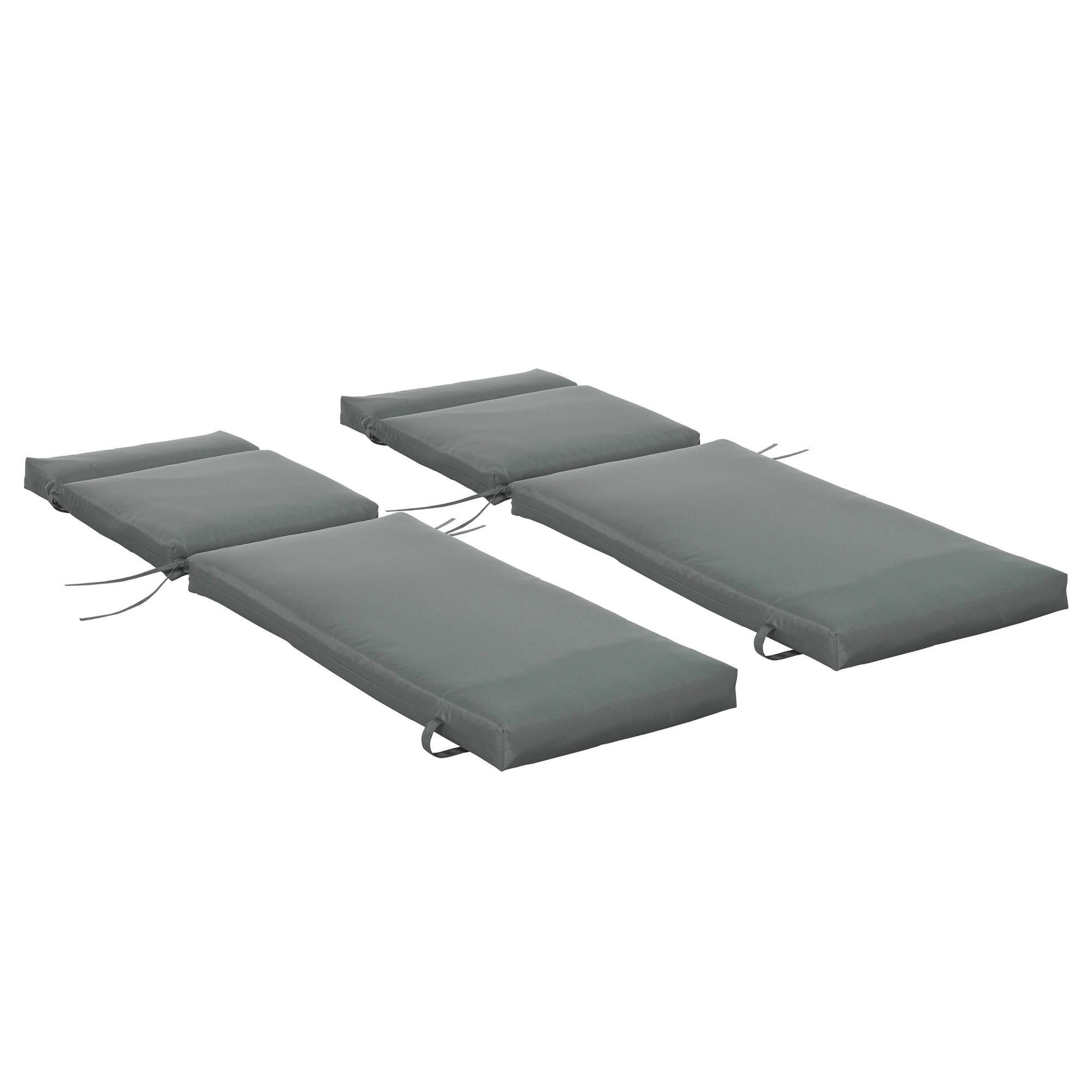 Beleben Sie Ihre Outdoor-Lounge-Sessel mit den bequemen Liegenauflagen von Outsunny. Die Auflage für Sonnenliege haben einen atmungsaktiven Polyesterbezug und eine hochdichte Füllung, die optimalen Halt bietet. Sie passen auf fast alle Lounge-Sessel und können mit seitlichen Bändern sicher befestigt werden, damit sie nicht verrutschen. Die Auflage für Gartenliege erhöhen den Komfort beim Sonnenbaden spürbar.