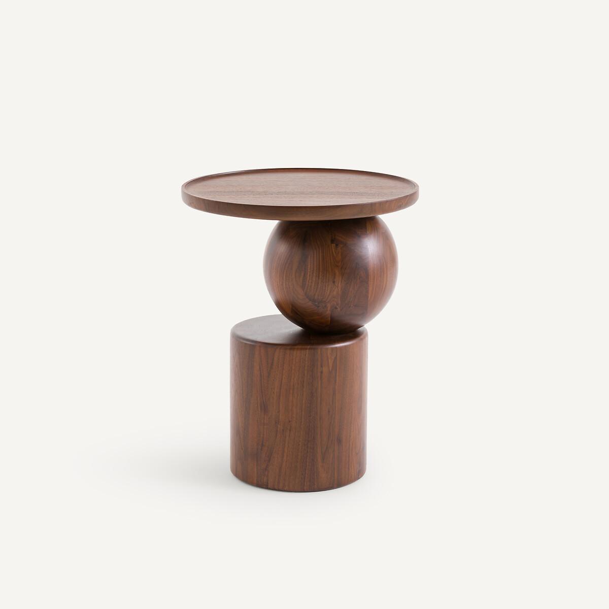 Der moderne skulpturale Beistelltisch Stigido verbindet zeitgemässe Form und traditionelle Herstellung aus Massivholz.