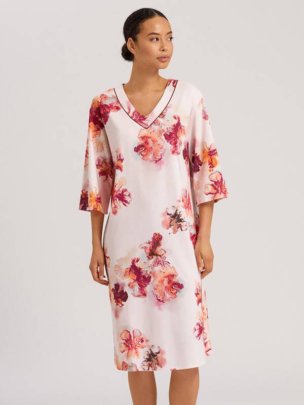Dieses Kaftan Nightshirt bietet eine bequeme und stilvolle Option für Loungewear oder Nachtwäsche. Das Design umfasst einen V-Ausschnitt mit kontrastierenden Paspeln und Dreiviertelärmeln, die eine entspannte Passform bieten.
