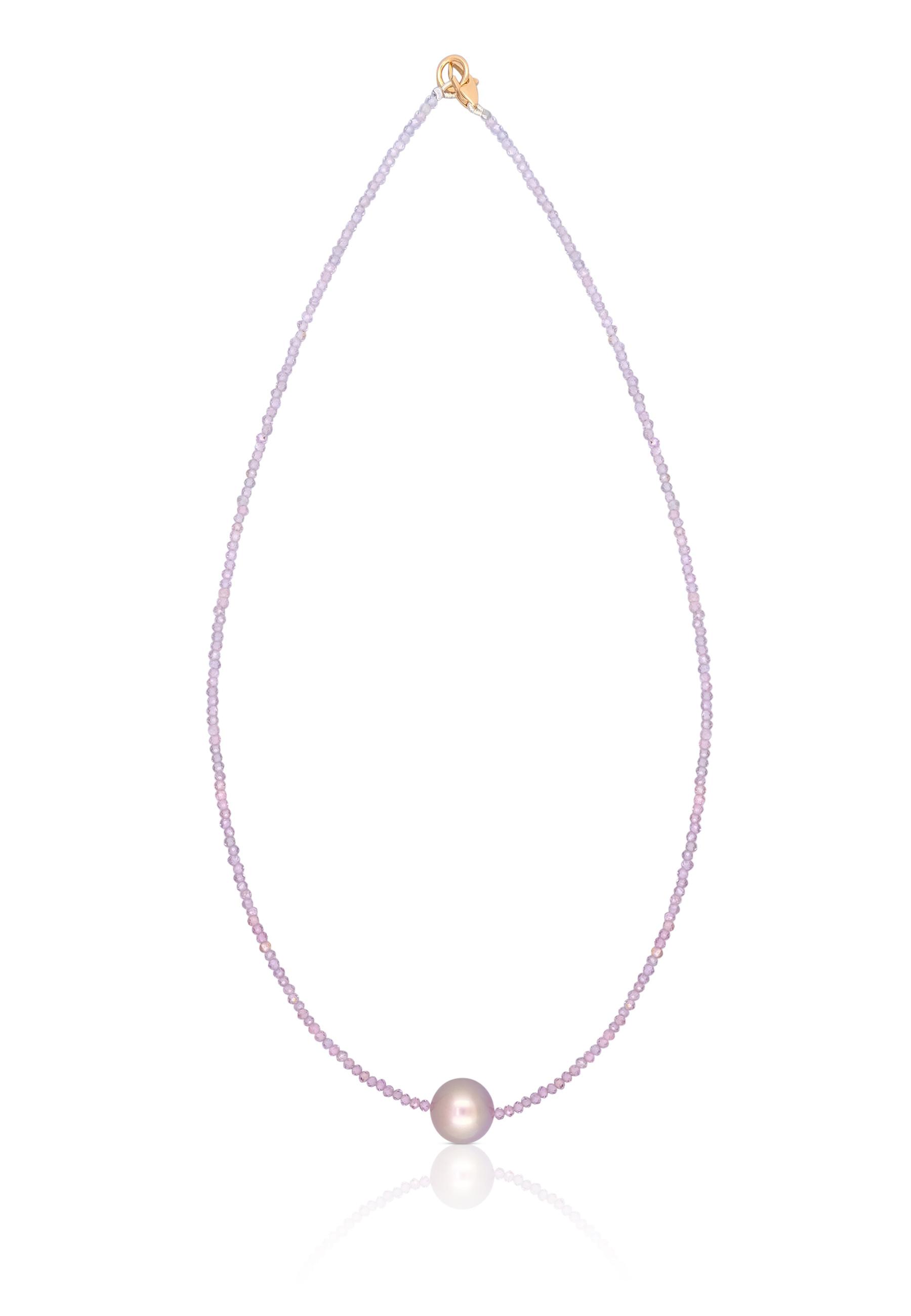 MUAU Schmuck, Collier Roségold 750 Süsswasserperle 10-11mm Spinell