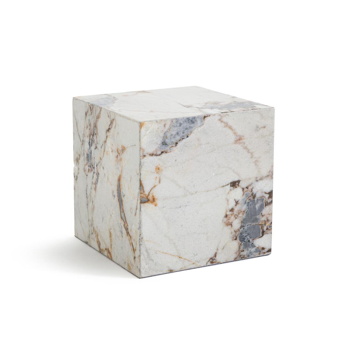 Wunderschöner leicht satinierter Marmor, dessen Maserung abstrakte Motive in verschiedenen Nuancen bildet. Jeder Beistelltisch Alcana ist ein Unikat.