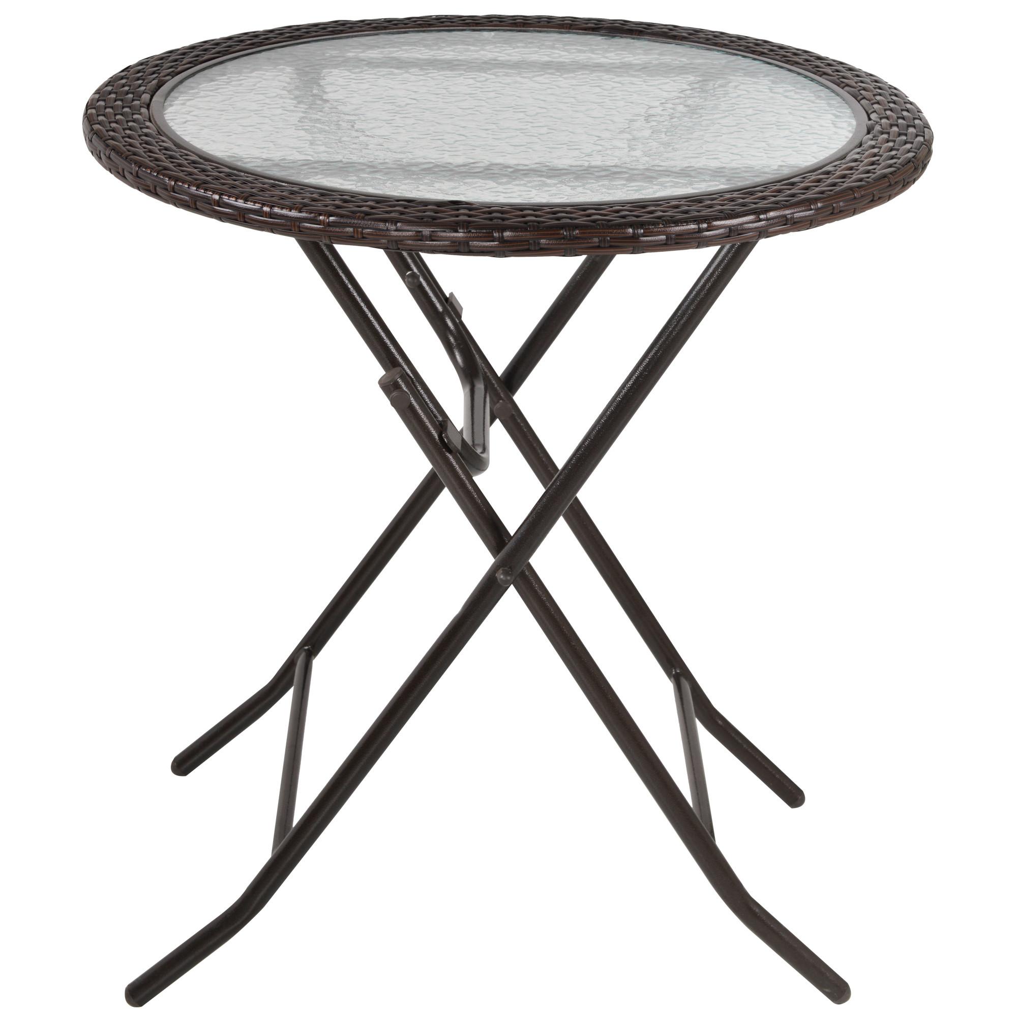 Verleihen Sie Ihrem Innen- oder Außenbereich mit diesem wunderschönen runden Bistrotisch (Ø 68 x 73H cm) einen Hauch von Eleganz. Der Tisch besteht aus einem rostfreien Stahlrahmen mit einem schokoladenbraunen Geflecht aus Kunststoffrattan. Die Hartglastischplatte ist dabei nicht nur chic, sondern auch besonders pflegeleicht. Dank der Klappfunktion lässt sich der Tisch platzsparend einklappen und verstauen.