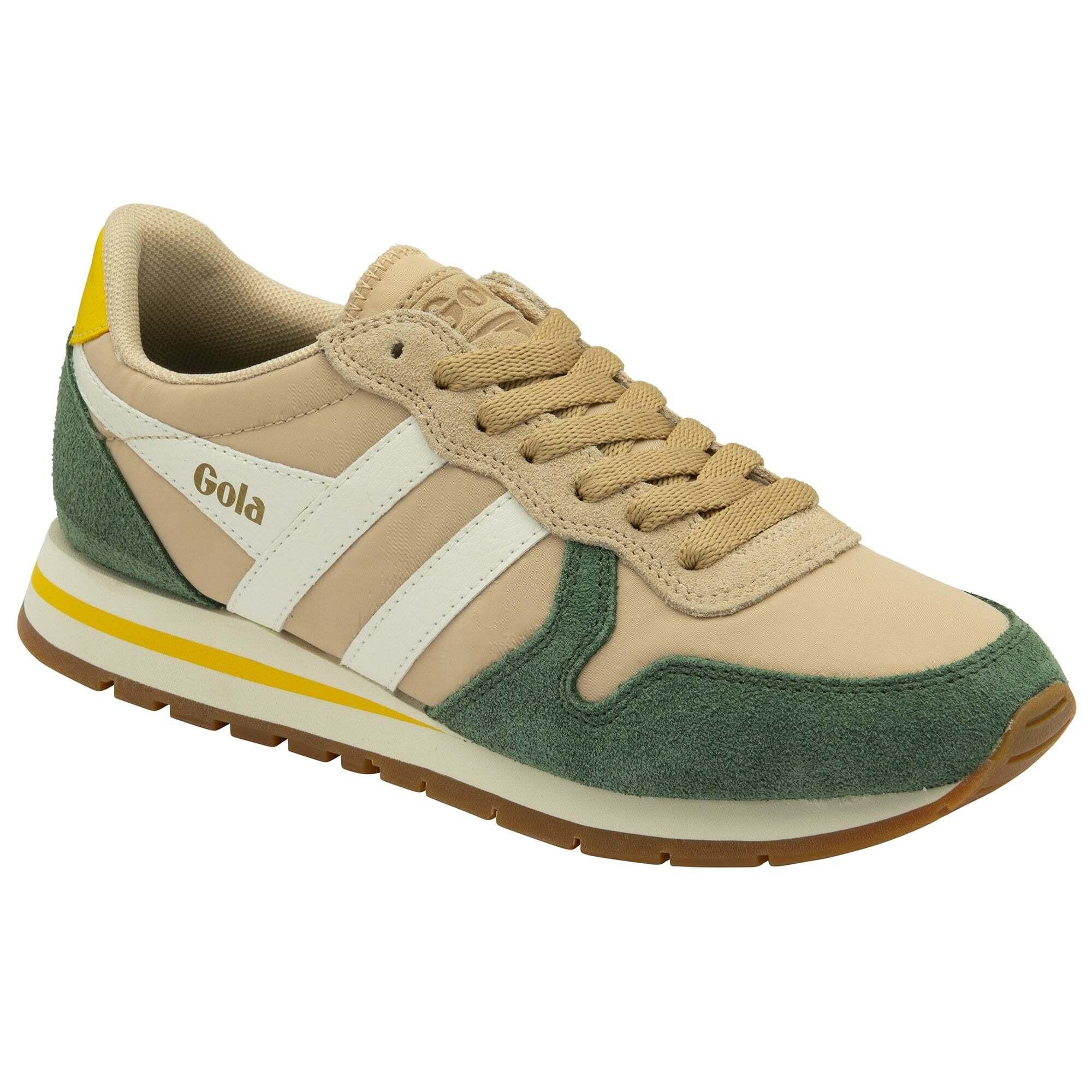 Werten Sie einen lässigen Look mit dem Daytona Chute für Frauen auf. Inspiriert von den Joggern der 90er Jahre, bleibt diese Sneaker-Silhouette mit ihrem naiven Obermaterial und der EVA-Zwischensohle ihrer Form treu. Durch die Kombination von Komfort und einer femininen Farbpalette (Hafer, Wassergrün und Off-White) erfüllt dieser Sportschuh alle Erwartungen der Saison.
