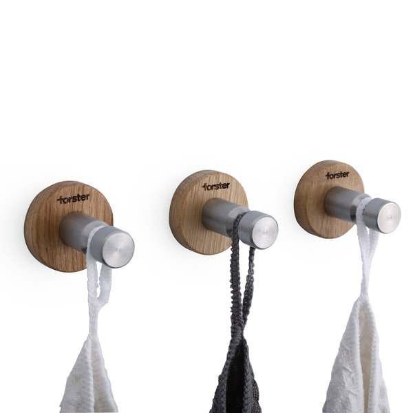 Der hochwertige runde Haken von Forster Home wurde aus FSC zertifizierter Eiche- bzw. Walnussholz und pulverbeschichtetem, bzw. gebürstetem Edelstahl gefertigt.