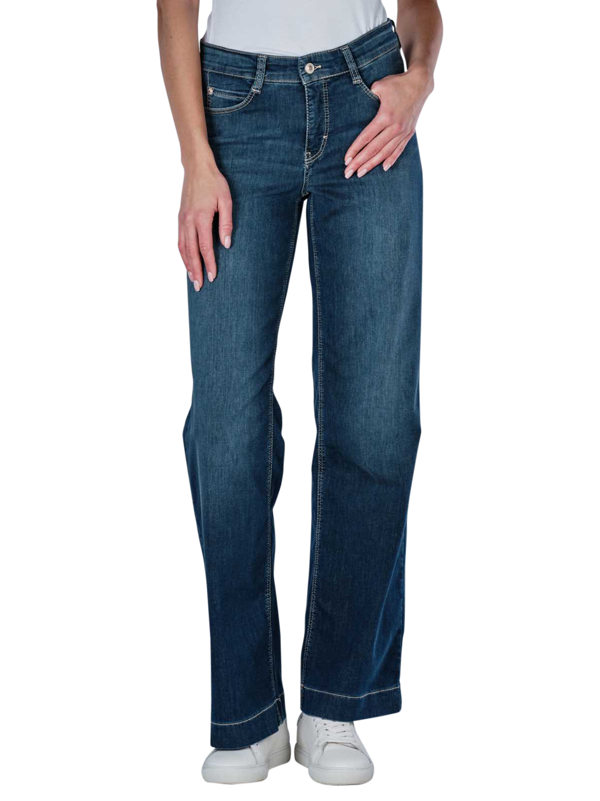 Die Mac Dream Wide Leg Wonder Light Denim Jeans in Dunkelblau ist eine stilvolle Hose für Frauen. Mit ihrem weiten Beinausschnitt und der mittleren Bundhöhe bietet sie eine bequeme Passform im Wide Leg-Stil. Gefertigt aus dünnem Stoff und mit einem Stretchanteil versehen, sorgt sie für optimalen Tragekomfort. Der Five-Pocket-Style mit Reissverschluss macht sie vielseitig.