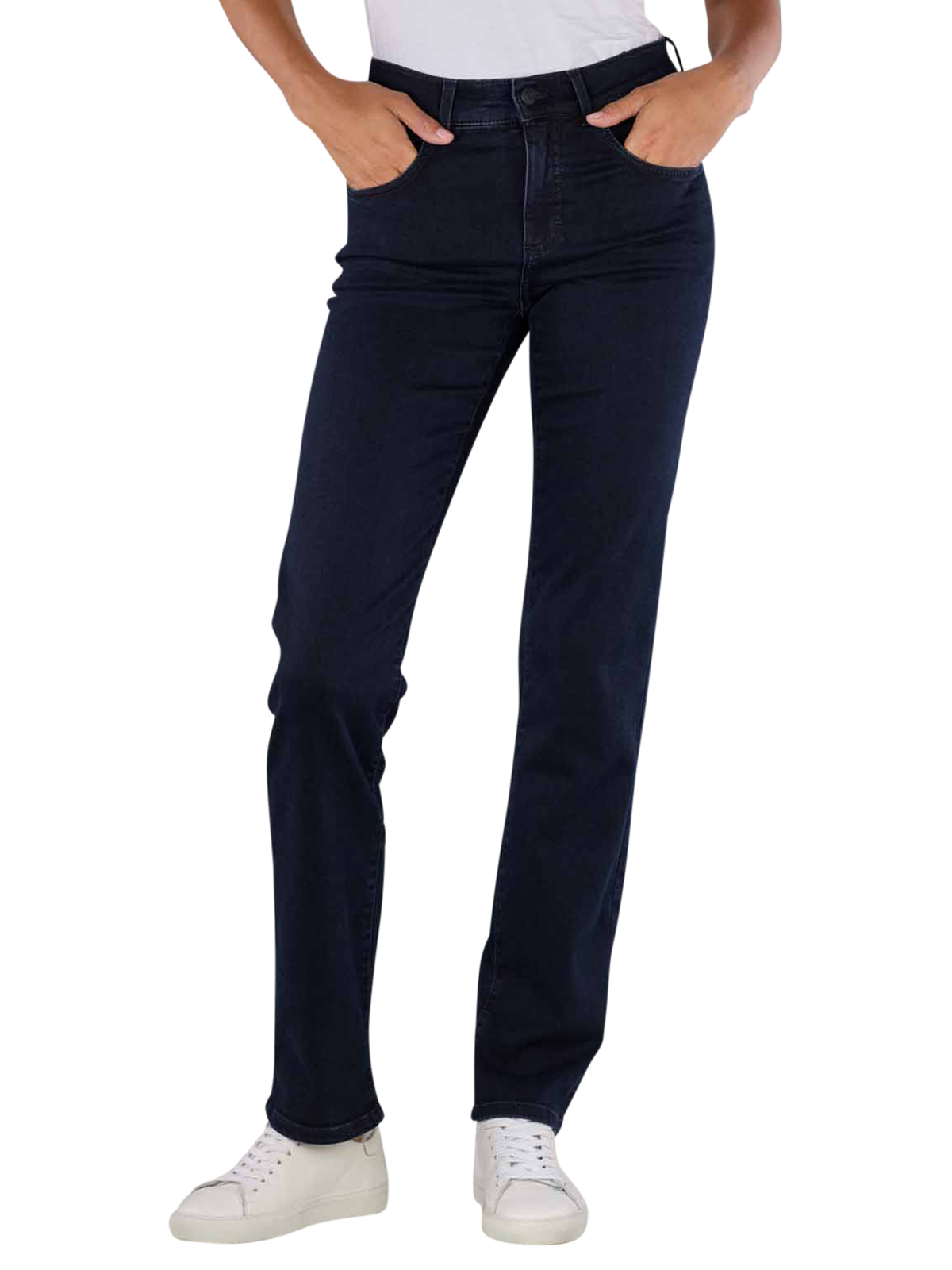 Die Angels Dolly Jeans in sportivem Denim und dunkelblauer Farbe überzeugt mit ihrem Straight Fit und hohen Bund. Der gerade Beinausschnitt und die Standarddicke des Stoffes bieten optimalen Tragekomfort. Mit Stretchanteil sorgt sie für Flexibilität.