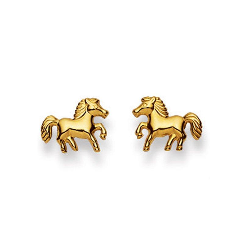 MUAU Schmuck Ohrstecker Pferd Gelbgold 750, 9mm