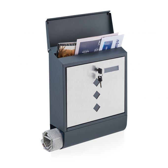 Verschönern Sie Ihr Zuhause mit diesem modernen Briefkasten mit Namensschild und elegantem Anthrazitgrau-Silber-Design. Sein geräumiger Innenraum und das sichere Schloss sorgen für Sicherheit und Ordnung Ihrer Post.