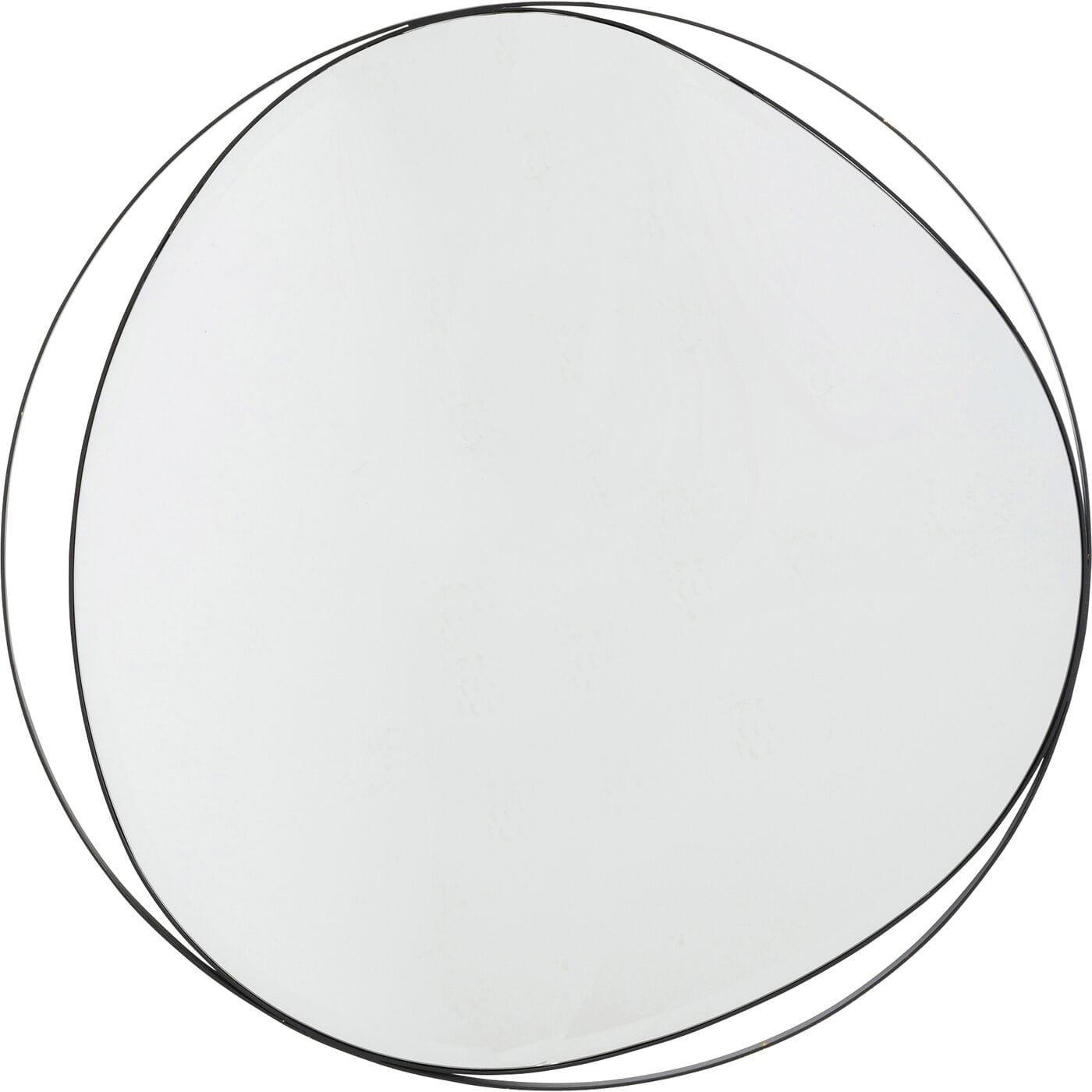 Erleben Sie einzigartiges Design mit unserem runden Spiegel von KARE. Dieses Kunstwerk in Spiegelform besticht durch seine aussergewöhnliche Formgebung. Der moderne Spiegel ist ein echter Hingucker, der jedem Raum Flair verleiht. Ob im Wohnzimmer, Schlafzimmer oder Flur, dieser Spiegel schmückt als Wanddekoration, ohne aufdringlich zu wirken. Darum harmoniert dieser runde Spiegel auch so gut mit allen Wohnstilen. Bringen Sie Ihren persönlichen Style zum Ausdruck und setzen Sie mit unserem KARE Spiegel ein Statement in Sachen Einrichtung.Runder Wandspiegel aus Metall mit schwarzem Rahmen, Durchmesser 80 ZentimeterZwei ineinander verschlungene, zierliche Rahmen aus lackiertem Stahl umspielen die Spiegelfläche Einfach Wandmontage durch die vormontierten Bilderhaken auf der Rückseite Grösse der Spiegelfläche 79 cm Durchmesser, Masse des Spiegels mit Rahmen 80 x 80 x 1.5 Zentimeter (H/B/T)Rückseite aus robustem und formstabilem MDF mit bereits montieren BilderhakenProduktinformation Glas: Glas verspiegelt, Rahmen: Stahl lackiert, Rückwand: mitteldichte Faserplatte lackiert, für Wandmontage horizontal und vertikal, handgearbeitet, 79 cm Ø Spiegelfläche