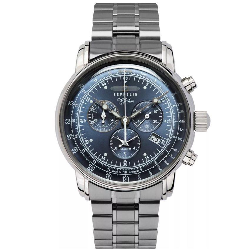 die zeppelin 7680mb3 100 jahre zeppelin chrono herrenuhr ist eine elegante hommage an die traditionsreiche geschichte der marke zeppelin und ein paradebeispiel für deutsche uhrmacherkunst. Mit ihrer zeitlosen ästhetik, der hochwertigen verarbeitung und der präzisen technik ist diese uhr ein perfekter begleiter für anspruchsvolle herren, die auf der suche nach einem stilvollen und funktionalen zeitmesser sind. Das herz der uhr ist das zuverlässige schweizer quarzwerk ronda 5130.b, das für seine präzision und langlebigkeit bekannt ist. Mit vielseitigen funktionen wie einer stoppuhr, kleinen sekunde, telemeter, tachymeter und einer datumsanzeige bietet die uhr zahlreiche praktische features, die ihren träger in unterschiedlichsten alltagssituationen unterstützen. Diese kombination aus technischer raffinesse und klassischem design macht die zeppelin 7680mb3 zu einem unverzichtbaren accessoire. Das graue edelstahlgehäuse mit einem durchmesser von 42 mm und einer höhe von 13 mm verleiht der uhr eine maskuline, aber elegante präsenz. Die robuste bauweise wird durch das graue edelstahlarmband ergänzt, das nicht nur optisch beeindruckt, sondern auch langlebig und pflegeleicht ist. Das armband hat einen umfang von 200 mm und bietet mit seiner soliden verarbeitung einen bequemen und sicheren sitz am handgelenk. Durch das gesamtgewicht von 135 gramm liegt die uhr angenehm schwer in der hand, was ein gefühl von wertigkeit und stabilität vermittelt. Das mineralglas schützt das zifferblatt zuverlässig vor kratzern und äußeren einflüssen. Das blaue zifferblatt mit seinen weißen zahlen und indizes sorgt für eine hervorragende ablesbarkeit. Die leuchtzeiger und leuchtpunkte bieten zudem eine gute sichtbarkeit bei schlechten lichtverhältnissen, sodass die uhr auch in der dunkelheit zuverlässig abgelesen werden kann. Diese details unterstreichen die kombination aus funktionalität und klassischem design, die zeppelin seit über einem jahrhundert auszeichnet. Das edelstahlarmband fügt sich nahtlos in das gesamtbild der uhr ein und unterstreicht den edlen und modernen charakter dieses modells. Es wird mit einem sicheren faltschließe-verschluss gesichert, der einfach zu bedienen ist und gleichzeitig für einen festen sitz sorgt. Das material und die verarbeitung des bandes machen die uhr sowohl optisch ansprechend als auch alltagstauglich. Die technischen features dieser uhr sind ein wahres highlight. Der tachymeter ermöglicht die messung von geschwindigkeiten, während der telemeter die distanz zu akustischen signalen bestimmt ein echter pluspunkt für technik-enthusiasten. Die stoppfunktion und der alarm bieten zusätzliche funktionen, die die zeppelin 7680mb3 zu einem praktischen begleiter machen. Mit einer wasserdichtigkeit bis 50 meter ist die uhr zudem vor spritzwasser und regen geschützt, was sie zu einer soliden wahl für den täglichen gebrauch macht. Die zeppelin 7680mb3 ist eine wahre feier der luftfahrtgeschichte und ein symbol für präzision, qualität und eleganz. Sie erinnert an die pionierzeit der zeppeline und bringt diesen geist in die heutige zeit. Die kombination aus hochwertigen materialien, moderner technik und zeitloser eleganz macht diese uhr nicht nur zu einem funktionalen zeitmesser, sondern auch zu einem ausdruck von stil und persönlichkeit
