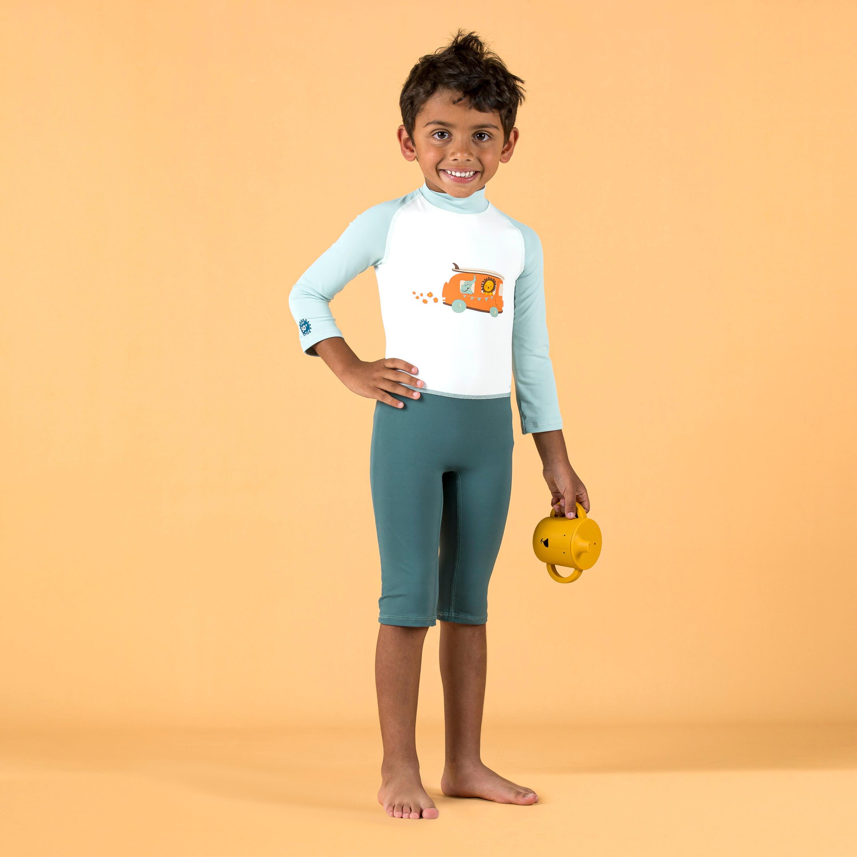 Dieser langärmlige UV-Schwimmanzug für Babys und Kleinkinder bietet Schutz an sonnigen Tagen am Strand oder im Schwimmbad. Der Anzug verfügt über einen verspielten Aufdruck und ist somit eine charmante Wahl für die Kleinsten.