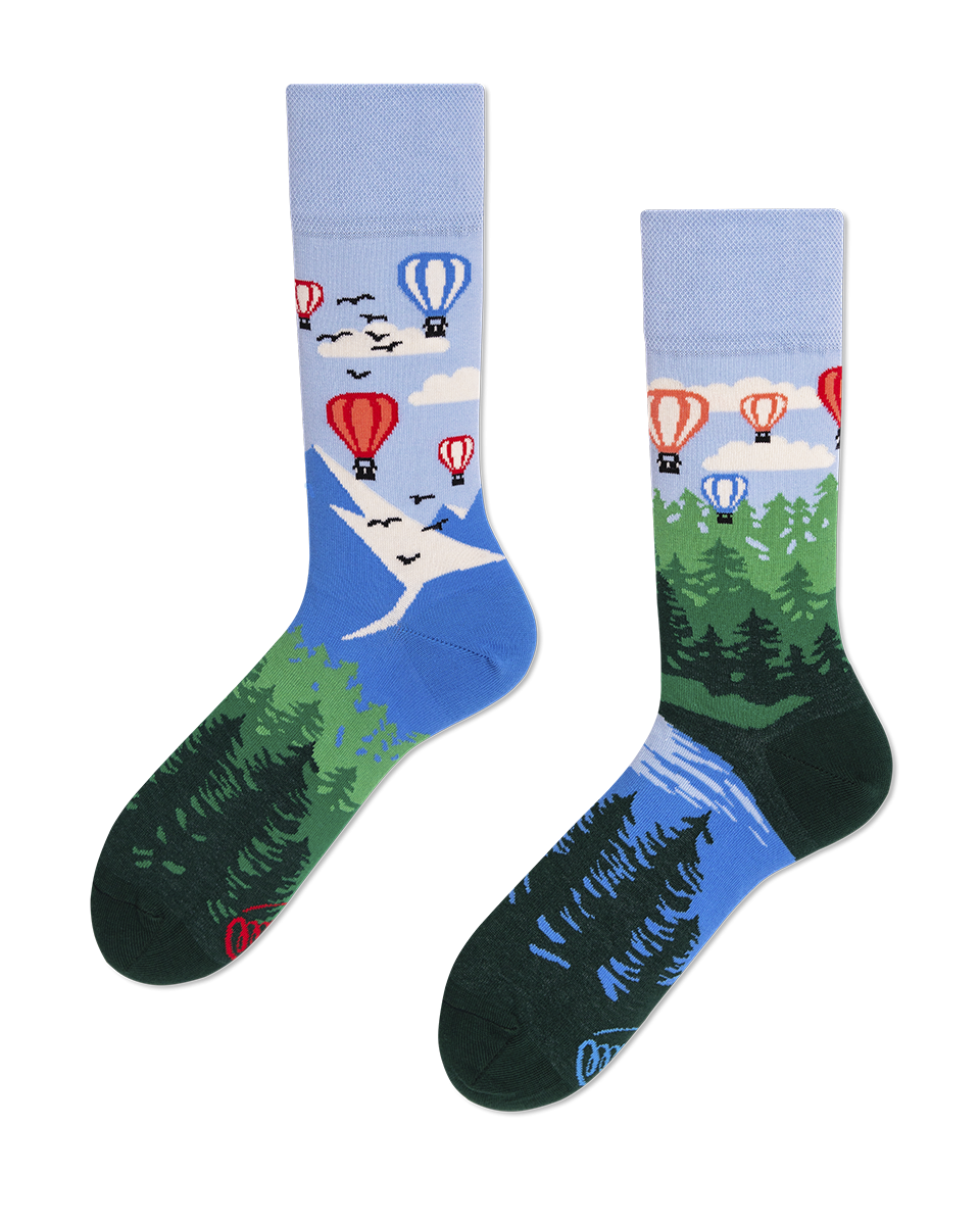 Diese Socken zeichnen sich durch ein verspieltes Design mit Heissluftballons aus, die über Berge und Wälder schweben. Die lebendigen Farben und die detaillierte Bildsprache verleihen jedem Outfit einen Hauch von Abenteuer und machen sie zu einem einzigartigen Accessoire. Many Mornings ist ein Familienunternehmen aus Polen mit 25 Jahren Erfahrung, das sich auf handwerkliche Tradition konzentriert, um eine neue Qualität zu erreichen. Der Wunsch nach aufregenden Mustern und frischen Farben ist die Grundlage ihrer Kreationen, wobei sie Socken entwerfen, die Lebensfreude ausstrahlen.