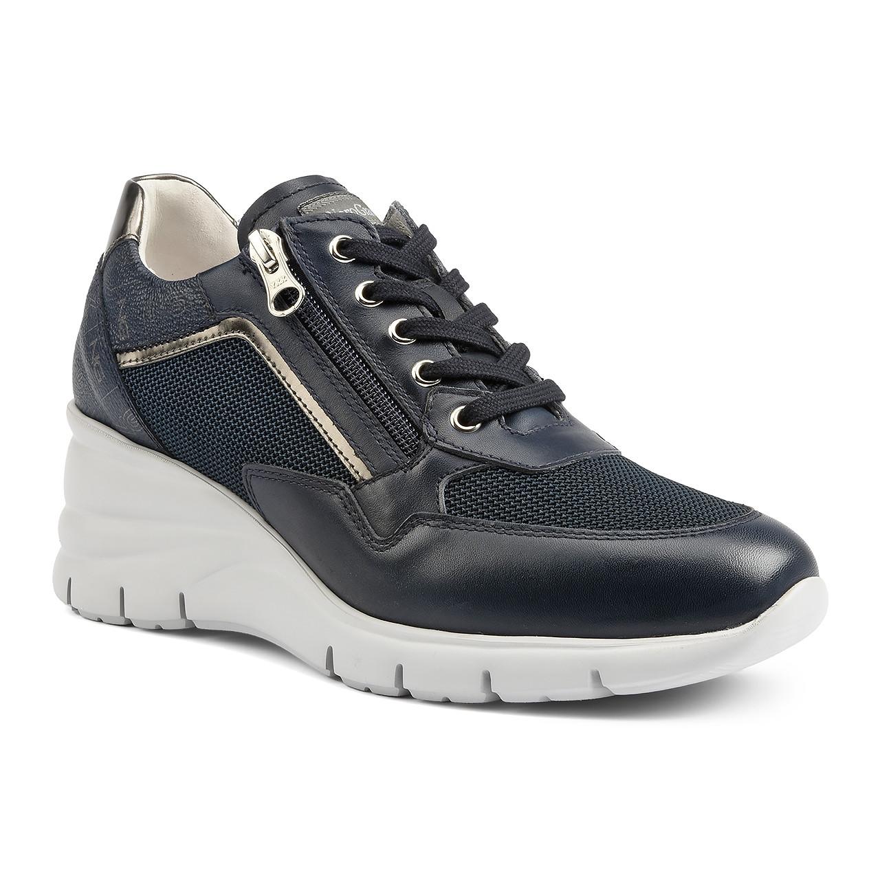 Dieser trendige und moderne Sneaker ist der perfekte Begleiter für die kommende Saison. Mit einer herausnehmbaren Decksohle sowie einer verstärkten Zehen- und Fersenkappe bietet er optimalen Tragekomfort. Der angesagte Materialmix im Lagen-Look verleiht dem Schuh eine stylische Note, während die robuste Keilsohle das Bein optisch streckt. Dank des praktischen Reißverschlusses ist ein müheloser Einstieg garantiert.