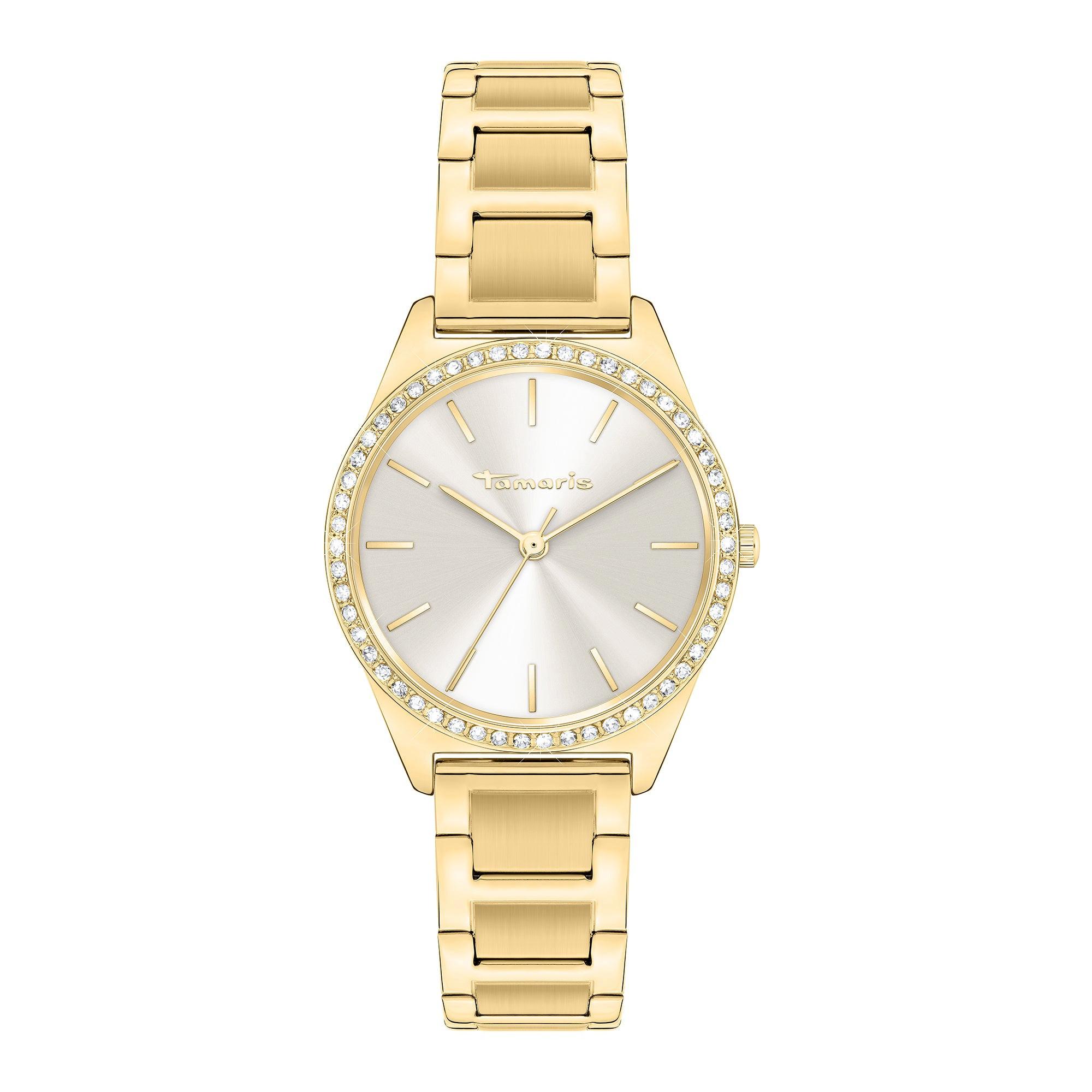 Klassisch, elegant und doch modern begeistert diese schöne Tamaris Damenuhr mit rundem, flachem Gehäuse und teilmattiertem Edelstahlarmband. Auf dem silbernen Zifferblatt sorgen erhabene Indexe für beste Ablesbarkeit und eine elegante Note. Die funkelnden Glassteine auf der Lünette runden den Look perfekt ab. Create your own: Das Armband ist sehr angenehm zu tragen und dank der Wechselstege superschnell und einfach ausgetauscht.