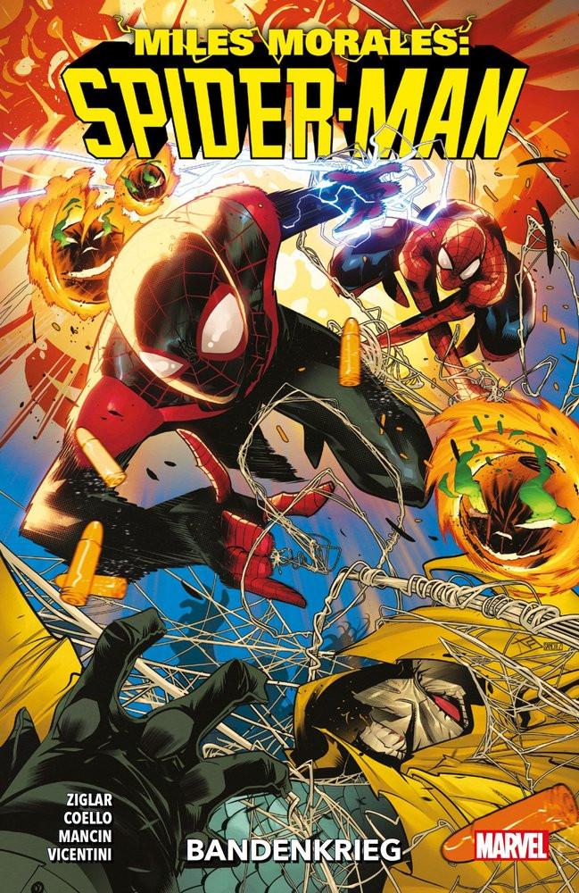 DIE SCHLACHT UM BROOKLYN In ganz New York tobt ein Krieg der Gangster und Superschurken! Wandkrabbler Miles Morales gehört zum Elite-Team von Spider-Man Peter Parker, das die Stadt vor den Supergangstern retten soll. Doch als Hobgoblin seine Finger nach Brooklyn ausstreckt, versammelt der junge Spidey eine eigene Truppe, um den Bösewicht aufzuhalten. Darüber hinaus prallen Miles und Misty Knight auf Dylan Brock, den neuen Venom. Miles' Abenteuer im Spidey-Event Gang War, inszeniert von Cody Ziglar (Spider-Man: Beyond), Federico Vicentini (X Leben und X Tode von Wolverine), Iban Coello (Venom) und anderen. ENTHÄLT: MILES MORALES: SPIDER-MAN (2022) 13-16 & GIANT-SIZE SPIDER-MAN (2024) 1