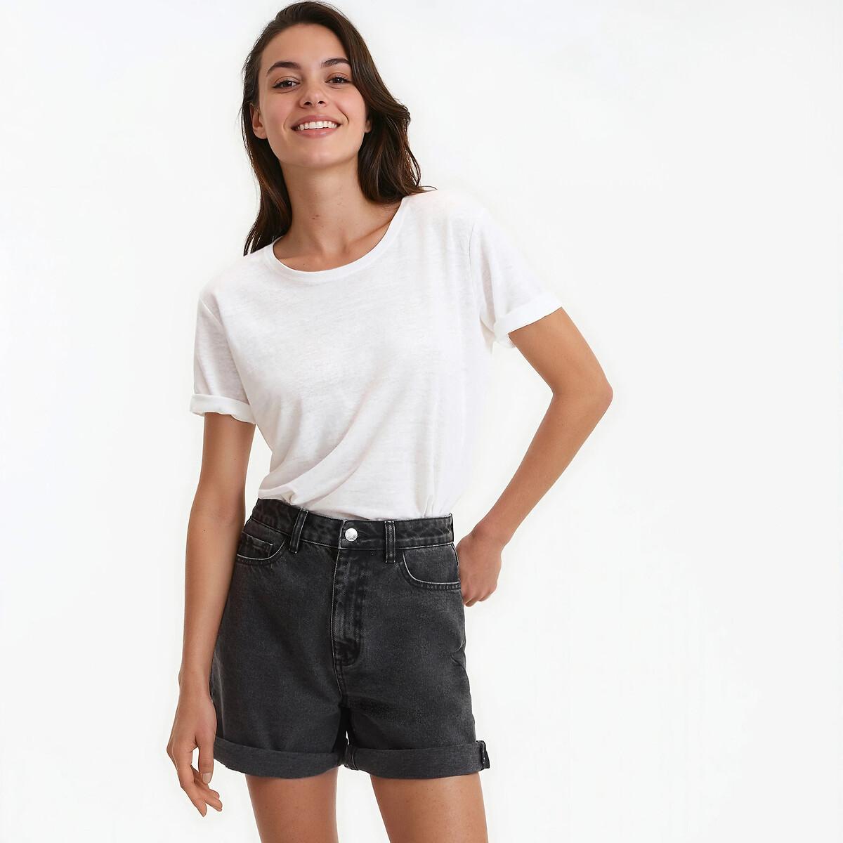 Weicher Leinenjersey-Strick für dieses kurzärmelige T-Shirt mit Rundhalsausschnitt und Saumabschluss.