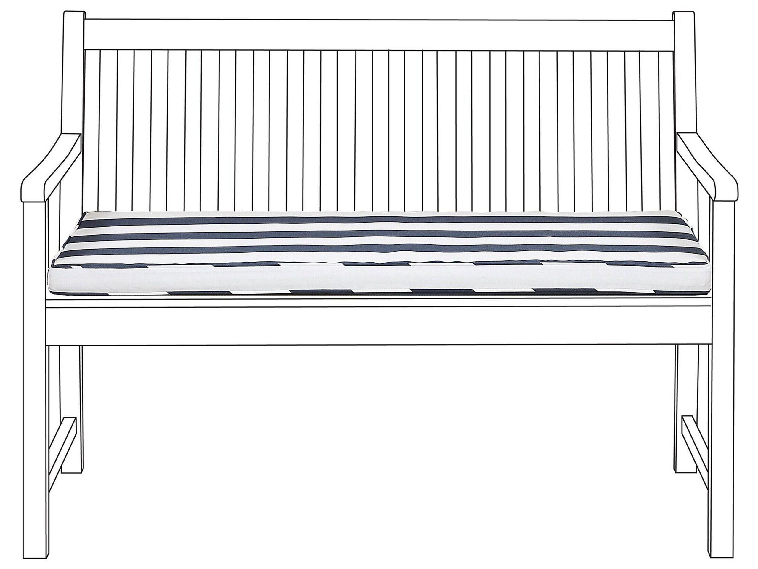 Moderne Bankauflage im maritimen Look mit Reissverschluss. Das angesagte Streifenmuster kreiert eine wohlige Atmosphäre und macht das Sitzkissen zum unersetzlichen Bestandteil Ihrer ganz persönlichen Gartenoase. Die dicke Polsterung sorgt für sehr hohen Komfort und lässt jede Kaffee- oder Buchstunde zu einem Vergnügen werden. Mit den praktischen Befestigungsbändern kann die Auflage nicht nur einfach angebracht werden, sie kann auch nicht verrutschen und trotzt so jedem sommerlichen Windhauch. Dank verstecktem Reissverschluss ist ihr Bezug abzieh- und waschbar.