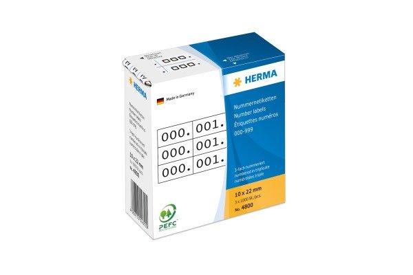 HERMA HERMA Dreifach-Nummern 22x10mm 4800 weiss, 0-999 1000 Stück