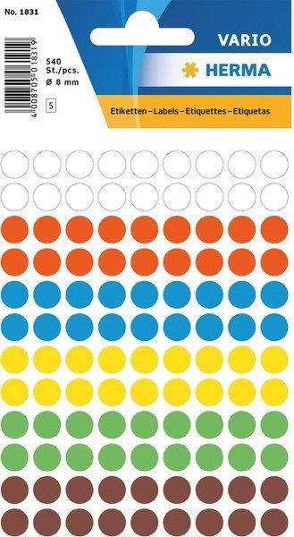 HERMA HERMA Markierungspunkte 8mm 1831 farbig ass. 540 Stück