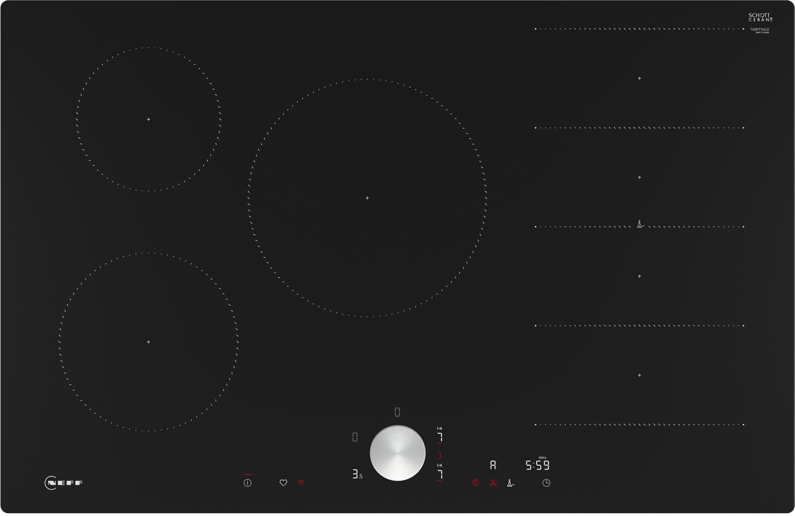 Twist Pad®: unsere abnehmbare, magnetische Einknopf-Bedienung zum Drehen ermöglicht Ihnen eine präzise und bequeme Steuerung. - Flex Induction: Ihr Kochfeld erkennt und erhitzt die einzelnen Töpfe und Pfannen. - Intuitive Flexzonen: Kochgeschirr platzieren und loslegen! Größe, Form und Position wird sofort erkannt. - Home Connect: überwachen Sie Ihr Kochfeld über die App. - Smart Hood Automatic: die Dunstabzugshaube passt sich während des Kochens automatisch an Ihre Kochfeldeinstellungen an. - - - - -