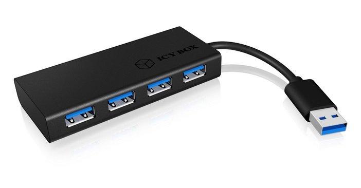 Schneller und unkomplizierter USB-HUB USB 3.0 ist der USB-Standard der Zukunft, mit bis zu 5 GBit/s Bandbreite. Damit ist ein Vielfaches der Übertragungsgeschwindigkeit von USB 2.0 möglich. Mit diesem Hub lässt sich der schnelle Standard gleich vierfach nutzen. USB 3.0 ist abwärts kompatibel, also auch für USB 2.0-Geräte und -Kabel geeignet (mit deren Geschwindigkeit). Die ICY BOX IB-AC6104-B ist damit der ideale Helfer, wenn die USB-Ports am Computer knapp werden oder schwer zugänglich sind.
